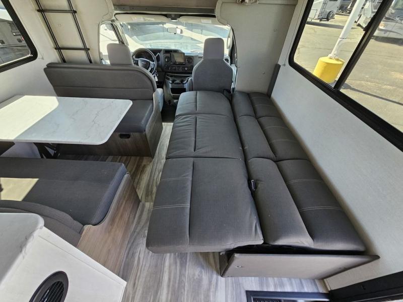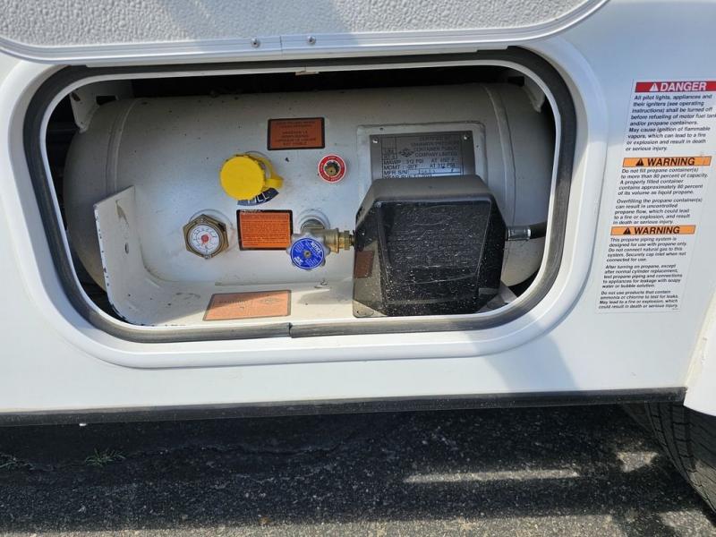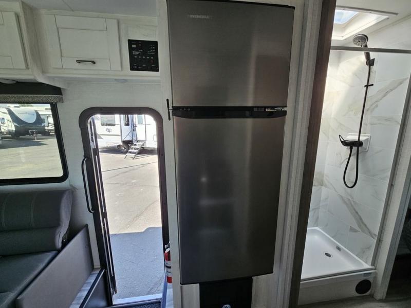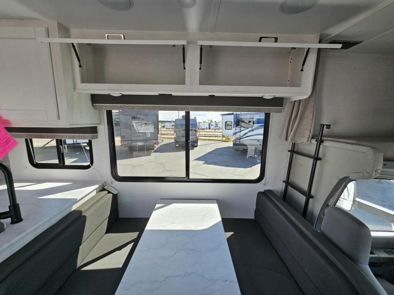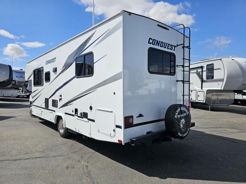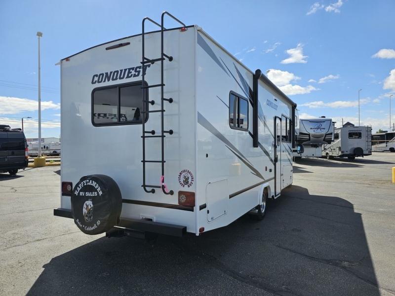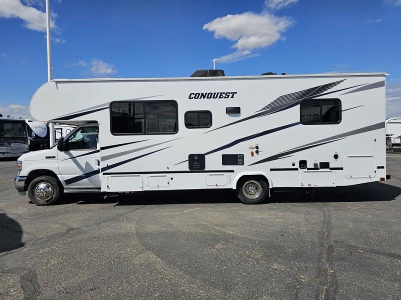 As you look forward to your next getaway, think about the many different ways that this Conquest Class C LE Series gas motorhome will come in handy! When you're tired after a long day of hiking, you won't have to search out a local restaurant because you'll be able to easily make your own dinner on the three-burner range in the kitchen, grab some condiments from the refrigerator, and wash up the dirty dishes in the single round sink. When you just want to rest, you have quite a few choices for that too with the booth dinette, the jackknife sofa, the bunk above the cab, and the RV queen bed in the rear private bedroom.