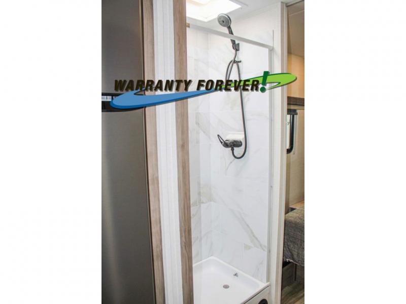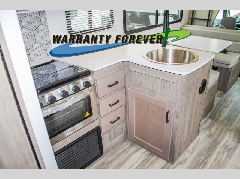 As you look forward to your next getaway, think about the many different ways that this Conquest Class C LE Series gas motorhome will come in handy! When you're tired after a long day of hiking, you won't have to search out a local restaurant because you'll be able to easily make your own dinner on the three-burner range in the kitchen, grab some condiments from the refrigerator, and wash up the dirty dishes in the single round sink. When you just want to rest, you have quite a few choices for that too with the booth dinette, the jackknife sofa, the bunk above the cab, and the RV queen bed in the rear private bedroom.