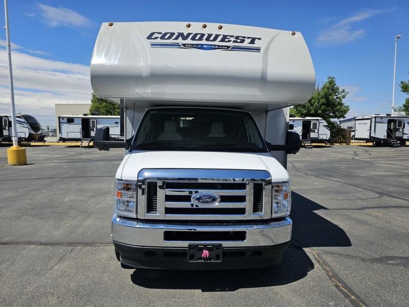 Each one of these Gulf Stream RV Conquest Class C gas motorhomes is built with a Cradle of Strength® on either the Ford E350 or E450 chassis depending on the model! Their construction also consists of a welded aluminum perimeter frame, an EPDM rubber roof, and high gloss white fiberglass sidewalls with Azdel substrate to prevent rotting. The included Conquest Luxury Package comes with vinyl flooring throughout for an easier clean, upgraded designer graphics, a dual-mounted stereo, and a back-up camera for easy parking.