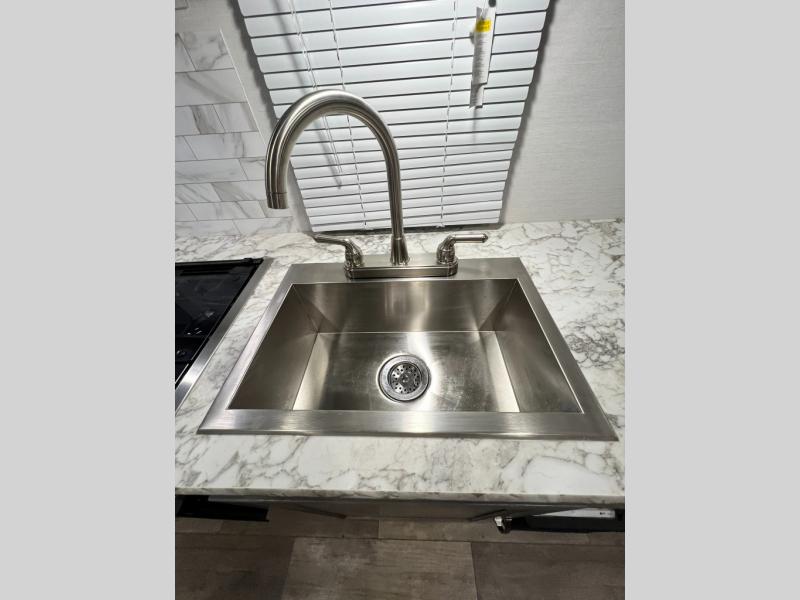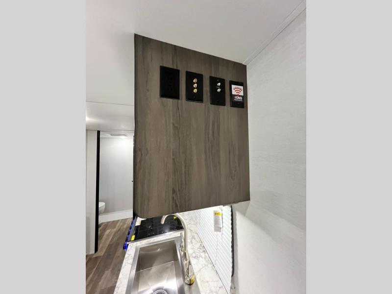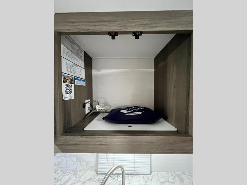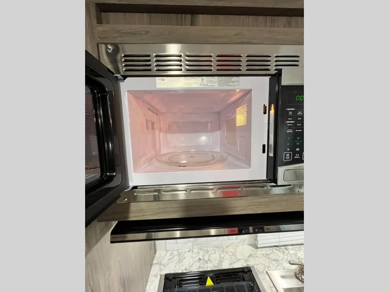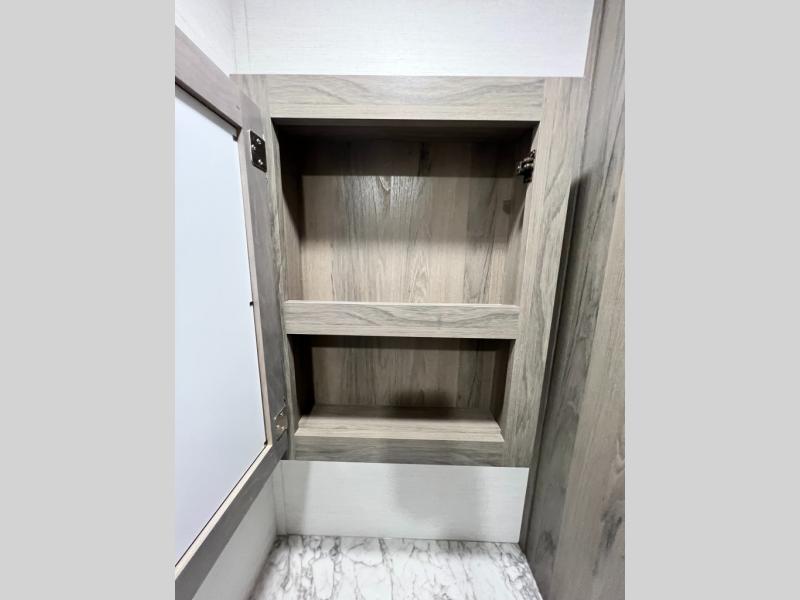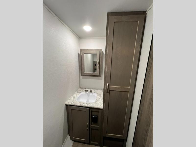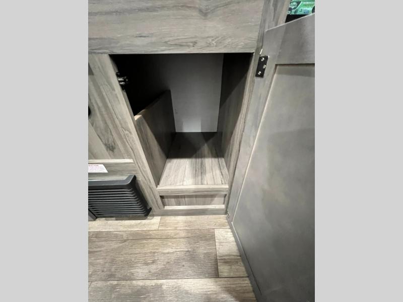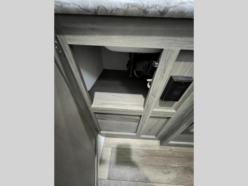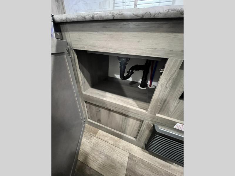 Are you looking for the perfect couples trailer you can take on weekend excursions? Look no further than this model that includes a front queen bed that will feel just like home. If you have any overnight guests they can sleep on the booth dinette. The queen bed can also be switched out for an optional jack knife sofa and optional fold-up Murphy bed, which would give you more seating space during the day if you choose. Each morning you can prepare a hot breakfast on the cooktop, and the 8 cu. ft. 12V refrigerator will be perfect for milk and eggs. This model also includes plenty of storage space, including a linen closet in the bath, a closet just outside the bathroom, and dual wardrobes for all your clothes!