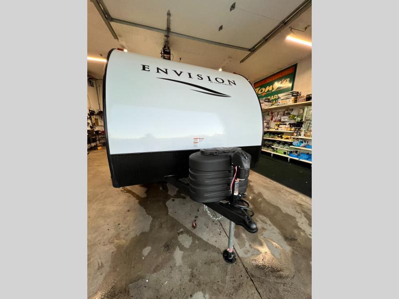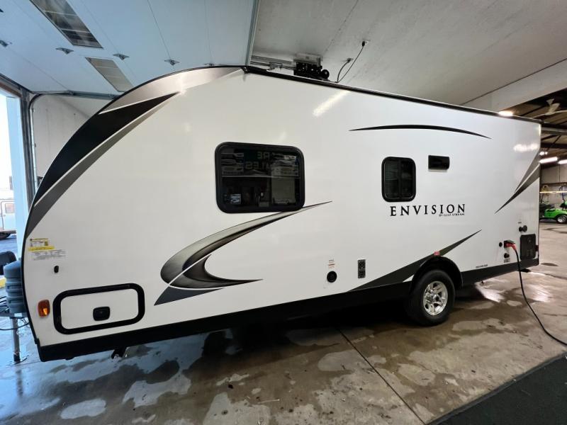 The Envision SVT travel trailers by Gulf Stream have got you covered when it comes to convenience, affordability, and comfort! Each model includes four manual stabilizer jacks, a friction hinge entry door, and deluxe slam-latch luggage doors so you can pack everything up quickly and easily. The fiberglass exterior sidewalls and one-piece vinyl roof create a lightweight trailer for easy towing, and each model comes standard with many safety features for your peace of mind. The included and required SVT Package features night shades, a power tongue jack, a tankless water heater, and an electric awning with LED lights and speakers to name a few stand-out features!