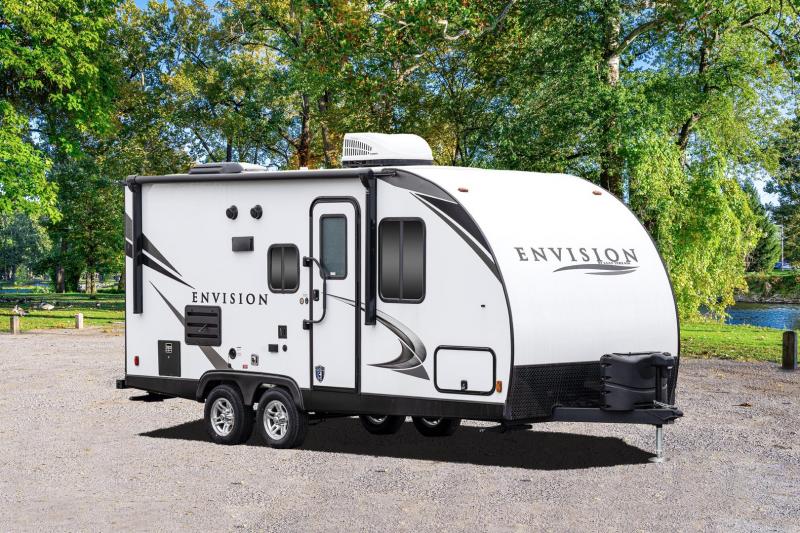 The Envision SVT travel trailers by Gulf Stream have got you covered when it comes to convenience, affordability, and comfort! Each model includes four manual stabilizer jacks, a friction hinge entry door, and deluxe slam-latch luggage doors so you can pack everything up quickly and easily. The fiberglass exterior sidewalls and one-piece vinyl roof create a lightweight trailer for easy towing, and each model comes standard with many safety features for your peace of mind. The included and required SVT Package features night shades, a power tongue jack, a tankless water heater, and an electric awning with LED lights and speakers to name a few stand-out features!