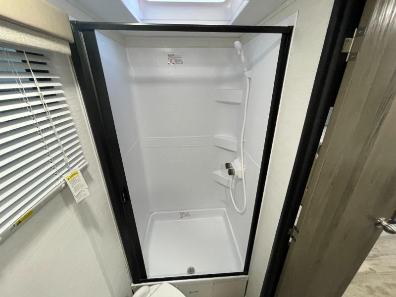 The Envision SVT travel trailers by Gulf Stream have got you covered when it comes to convenience, affordability, and comfort! Each model includes four manual stabilizer jacks, a friction hinge entry door, and deluxe slam-latch luggage doors so you can pack everything up quickly and easily. The fiberglass exterior sidewalls and one-piece vinyl roof create a lightweight trailer for easy towing, and each model comes standard with many safety features for your peace of mind. The included and required SVT Package features night shades, a power tongue jack, a tankless water heater, and an electric awning with LED lights and speakers to name a few stand-out features!