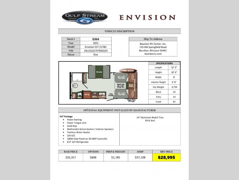 Gulf Stream RV Envision SVT 21TBD Highlights: