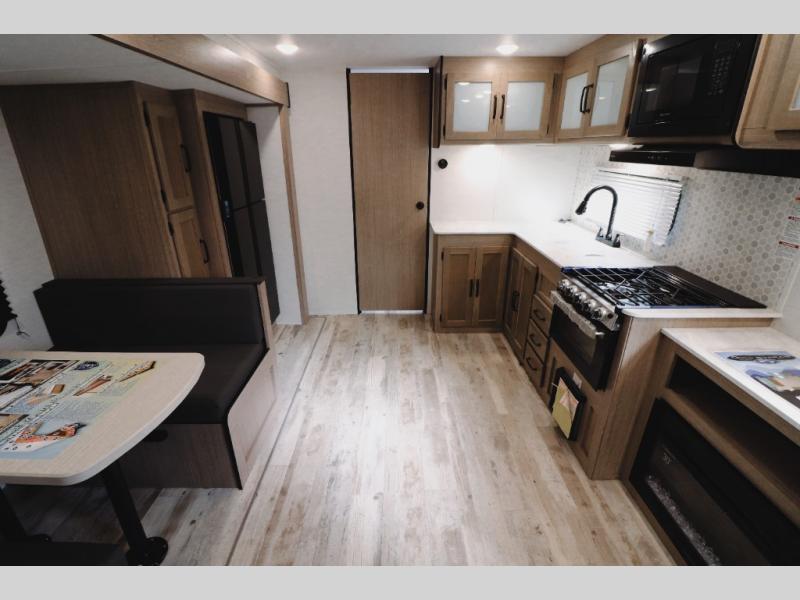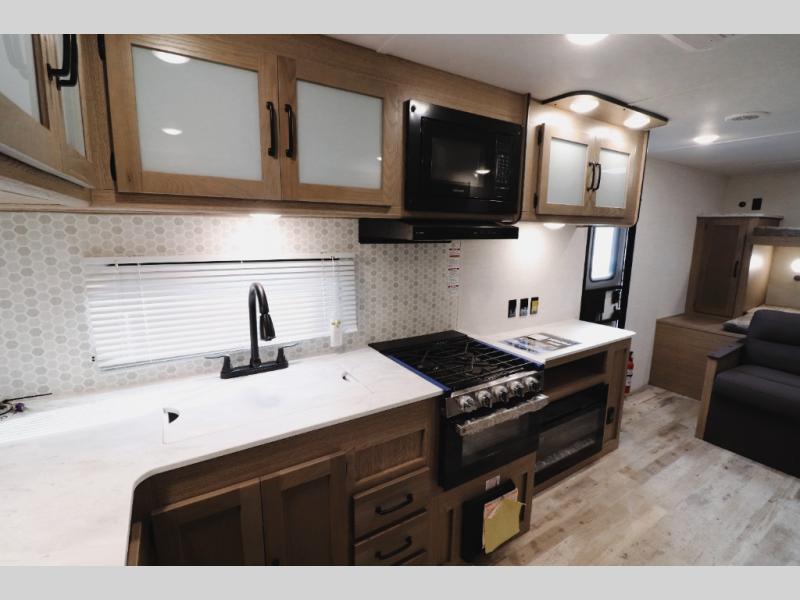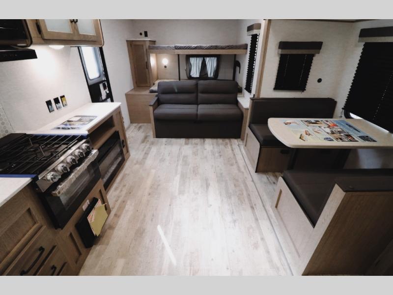 This model is thoughtfully designed to cater to the needs of first-time buyers, couples, and families. Its spacious interior comfortably accommodates family members, while the modern amenities and tech-ready features ensure a convenient and enjoyable camping experience. The available upgrades allow you to customize the RV to suit your preferences, making it a versatile choice for various camping styles.