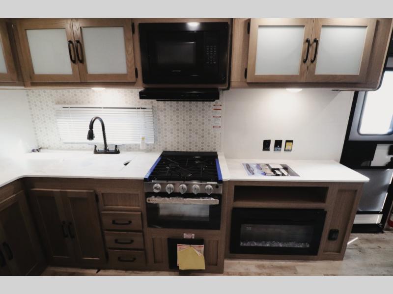 Enhanced Comfort: Options like a 15,000 BTU air conditioner, theater seating, and an electric fireplace are available to elevate your camping experience.