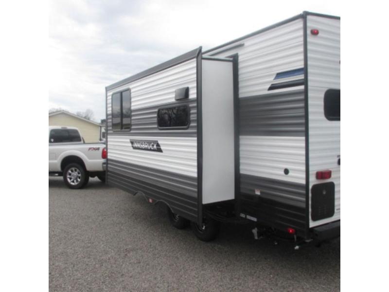 The Innsbruck Ultra Lite travel trailers by Gulf Stream are the perfect RV for families wanting to start their camping lifestyle, but not break the bank. These lightweight units are built with a diamond plate lower front, a one-piece synthetic vinyl roof, and a uni-body construction with steel hurricane straps tying the walls to the floor for added durability. The front power hitch jack and four stabilizer jacks will make set-up hassle-free once you arrive at the campground, and you can put out the electric awning to rest in the shade when you're done. Each model includes convenient amenities, like the 13,500 BTU A/C, the tankless water heater, a central control panel, and multiple USB ports for your tablet, phone, and camera! The inside is designed to make you feel at home with radiant LED lighting, designer kitchen backsplash, pleated privacy shades, craft-made cabinetry, plus many more features. Start your RV lifestyle with an affordable, lightweight Innsbruck Ultra Lite travel trailer today!