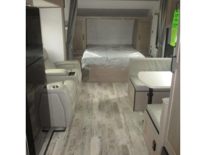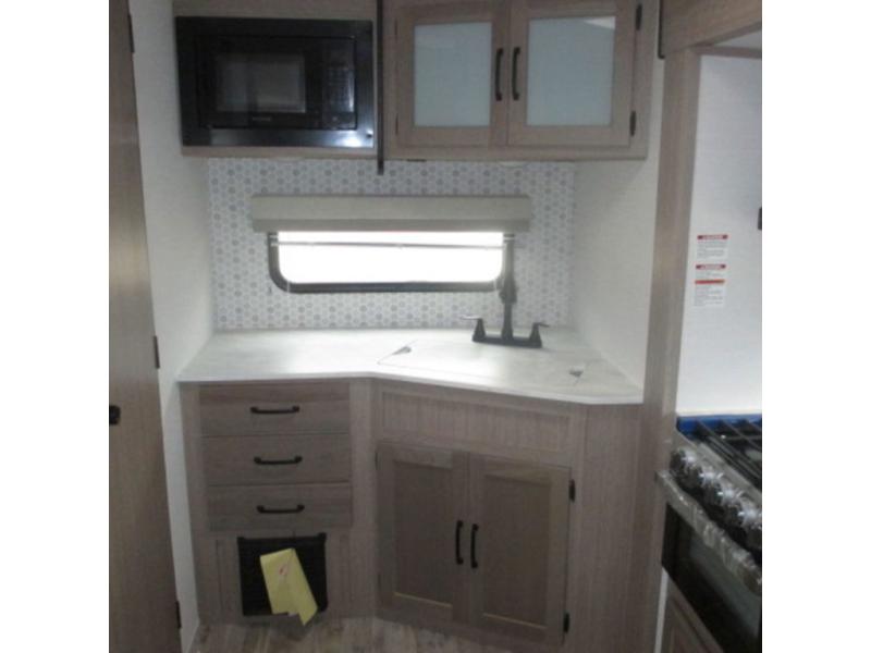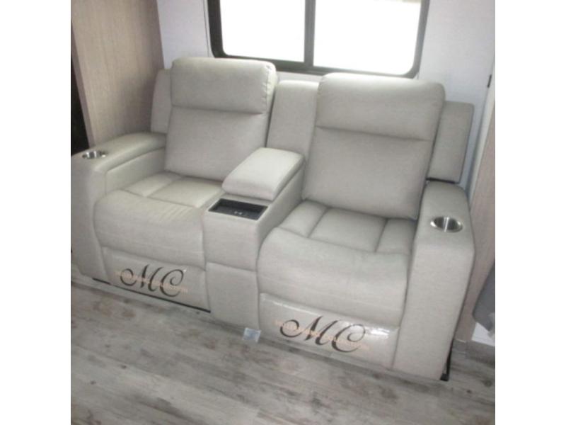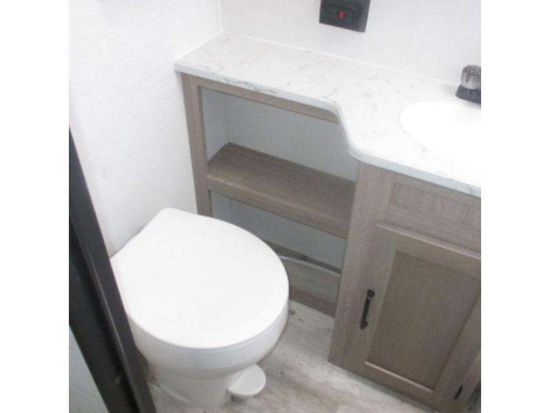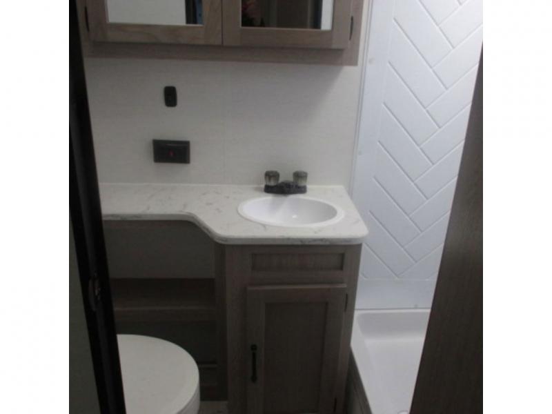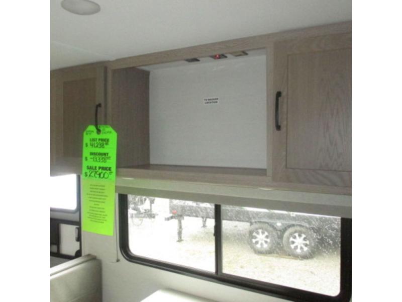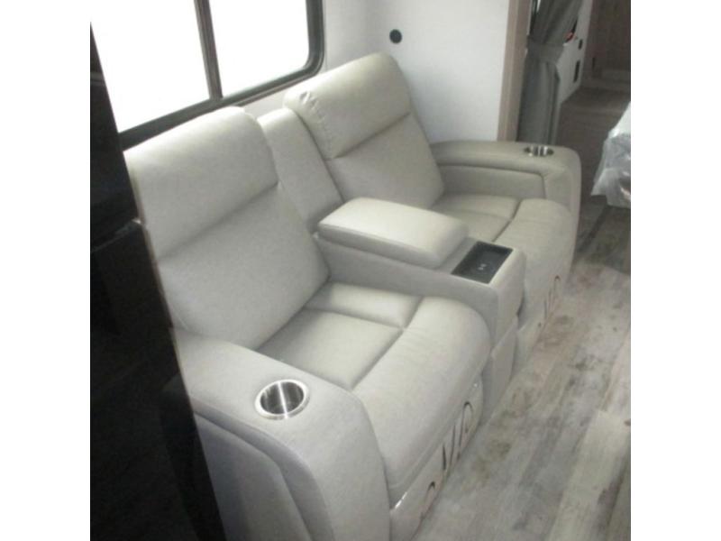 This travel trailer is perfect for you and your partner, thanks to the queen bed, which is ideal for sleeping and resting peacefully, beside it you will find a shirt closet and wardrobe to store your belongings. You can rest a bit on the theater seating or also have a chit-chat with your partner. Conveniently cook delicious food thanks to the kitchen which includes a refrigerator, three cooktop burners, microwave, and sink. After the food is done, you can comfortably have lunch at the 38' dinette while watching the TV. This unit is also fitted with a lot of space to store different things like pass-thru storage, overhead cabinets, pantry, and linen. Finally, take a relaxing bath in the incredible full bathroom with a skylight above the shower.