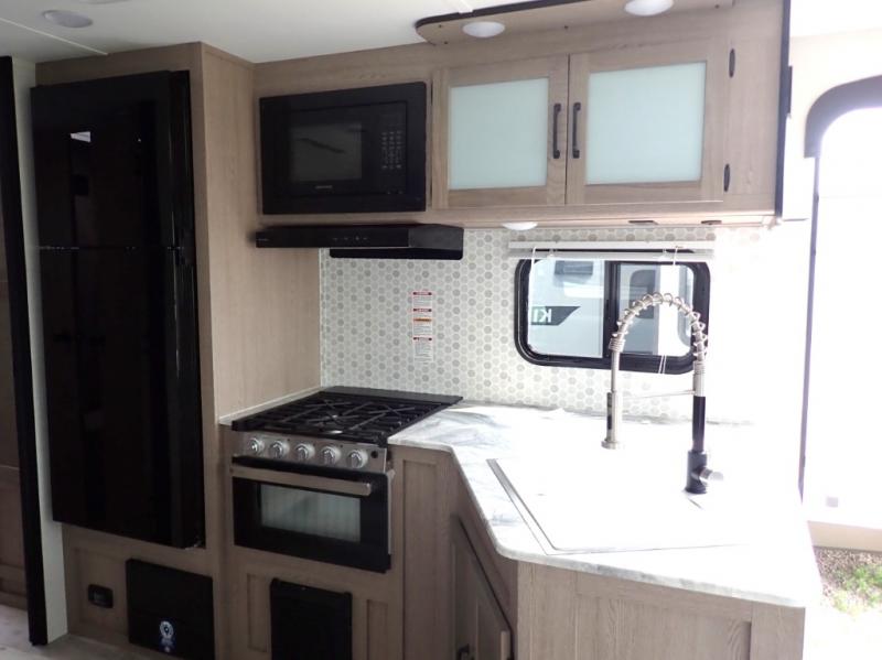 With any Kingsport Ultra Lite by Gulf Stream, you can enjoy a lightweight travel trailer on a budget with plenty of standard features to enjoy, and the required Lite Value Package offers convenience, comfort and Tech-Ready upgrades such as Wi-Fi and satellite TV ready connections, solar panel prep, back-up camera hookups, and multiple USB ports to keep the electronics charged. Each is constructed with a one-piece synthetic vinyl roof, fiberglass insulation hand-cut and glued in place, Butyl caulk for better seal and fewer streaks, and full-width steel outriggers for superior strength and support. Inside is easy to care for with vinyl wallcovering and high-performance vinyl flooring throughout, plus you will enjoy the upgraded furniture package, the designer backsplash in the kitchen, and the craft-made cabinetry with designer drawer and door pulls. Make your selection now!