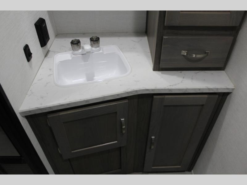 With any Matrix SVT travel trailer by Gulf Stream, the lightweight fiberglass sidewalls with Azdel will provide an easy to tow RV that offers a balance of value and comfort throughout. There are also deluxe slam-latch luggage doors, black radius tinted safety windows, and a one-piece vinyl roof for added durability. Inside, you'll find designer window treatments, easy-care vinyl flooring, and solid wood cabinet stiles. Each model also includes the SVT Package that includes a tankless water heater, night shades, a power tongue jack, and many more convenient features.