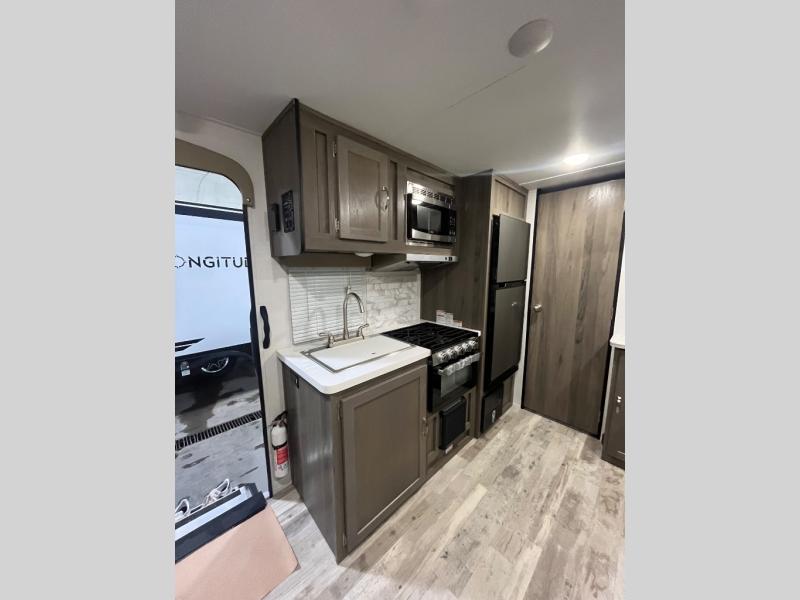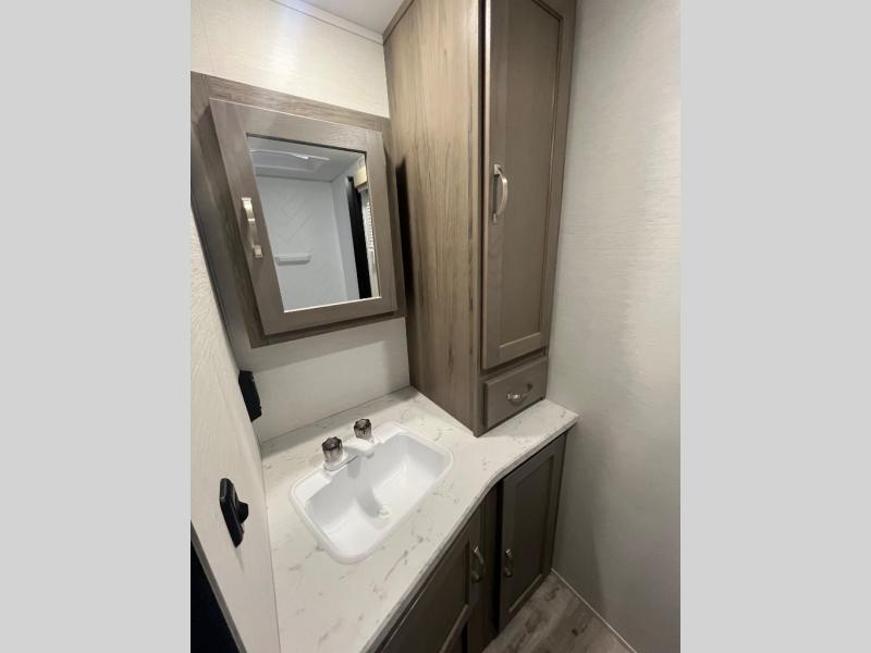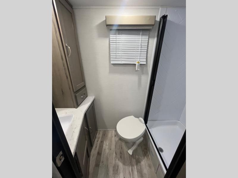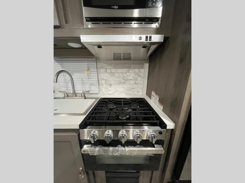 With any Matrix SVT travel trailer by Gulf Stream, the lightweight fiberglass sidewalls with Azdel will provide an easy to tow RV that offers a balance of value and comfort throughout. There are also deluxe slam-latch luggage doors, black radius tinted safety windows, and a one-piece vinyl roof for added durability. Inside, you'll find designer window treatments, easy-care vinyl flooring, and solid wood cabinet stiles. Each model also includes the SVT Package that includes a tankless water heater, night shades, a power tongue jack, and many more convenient features.