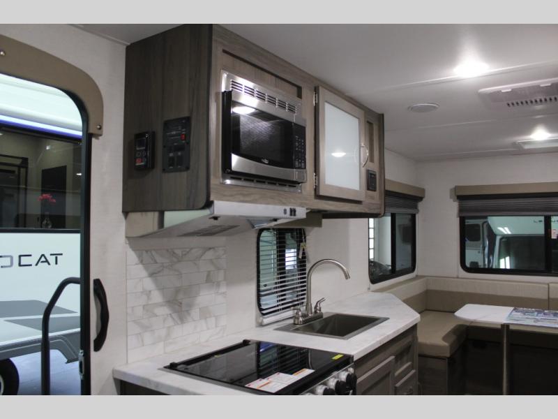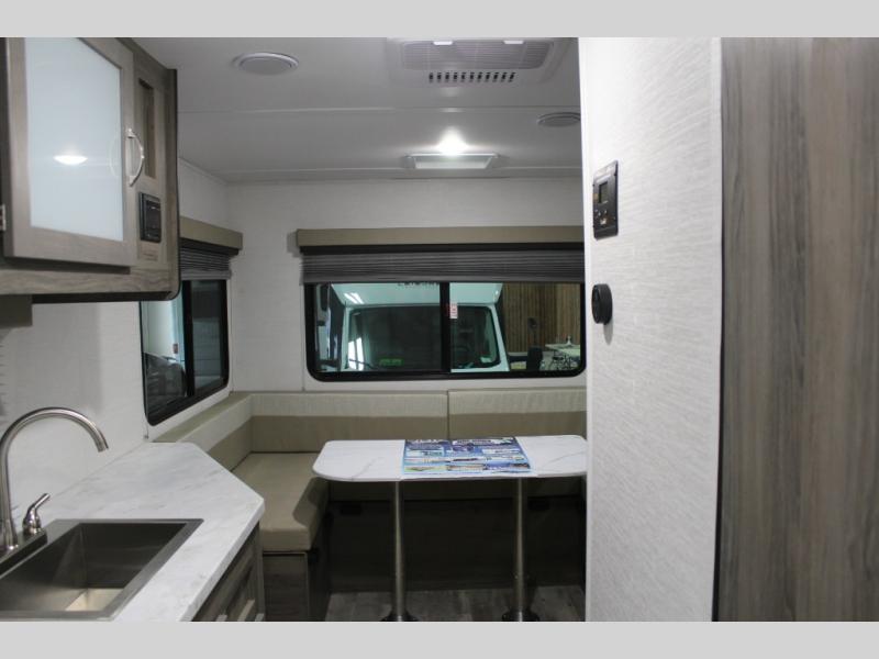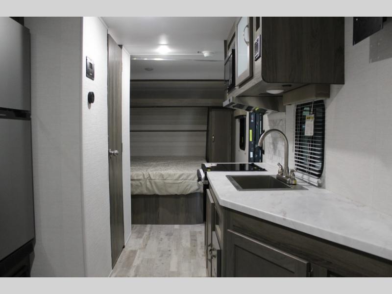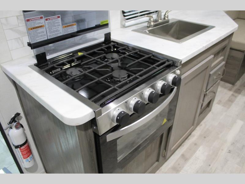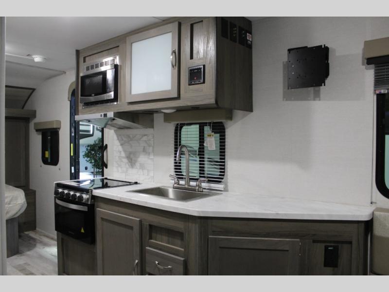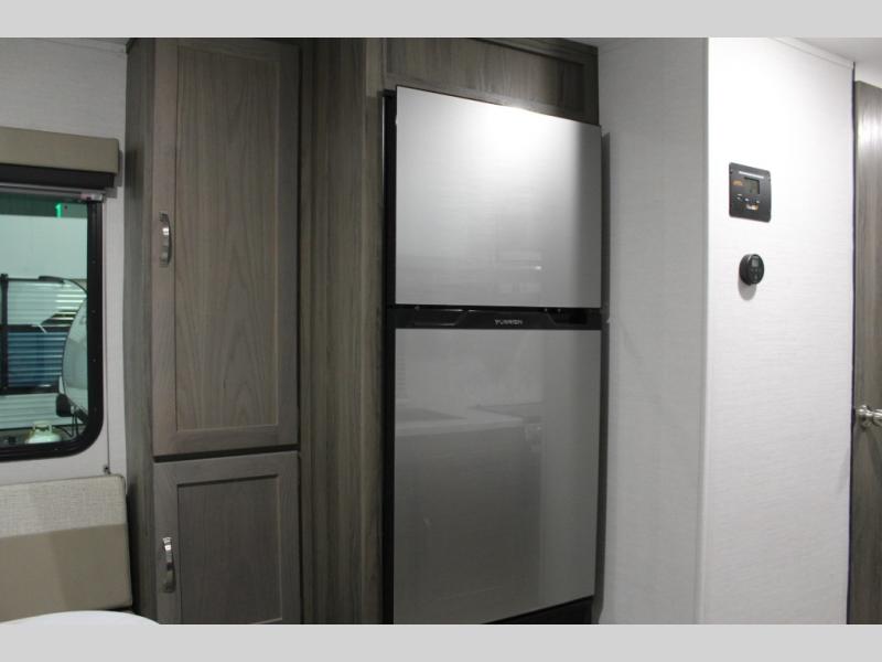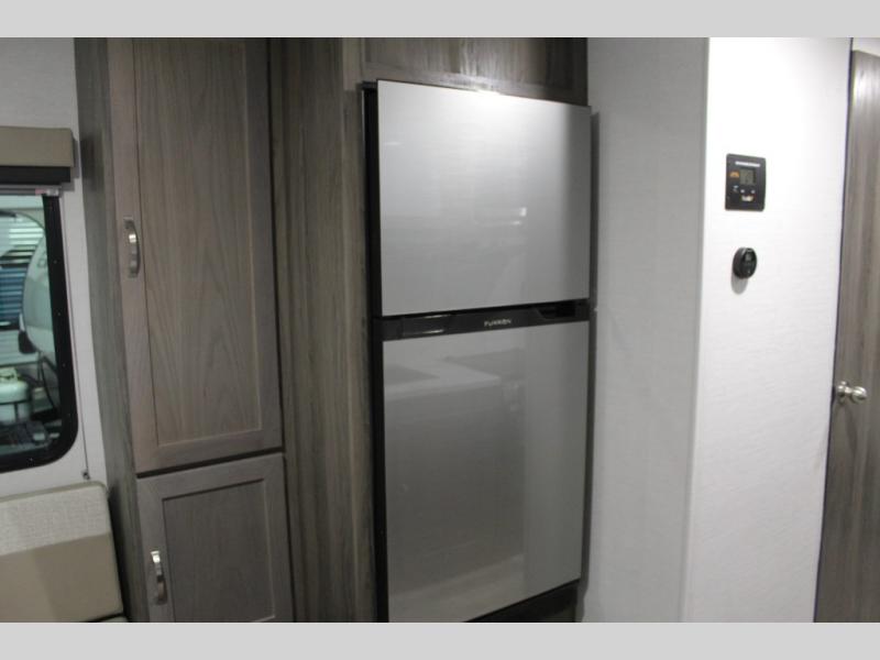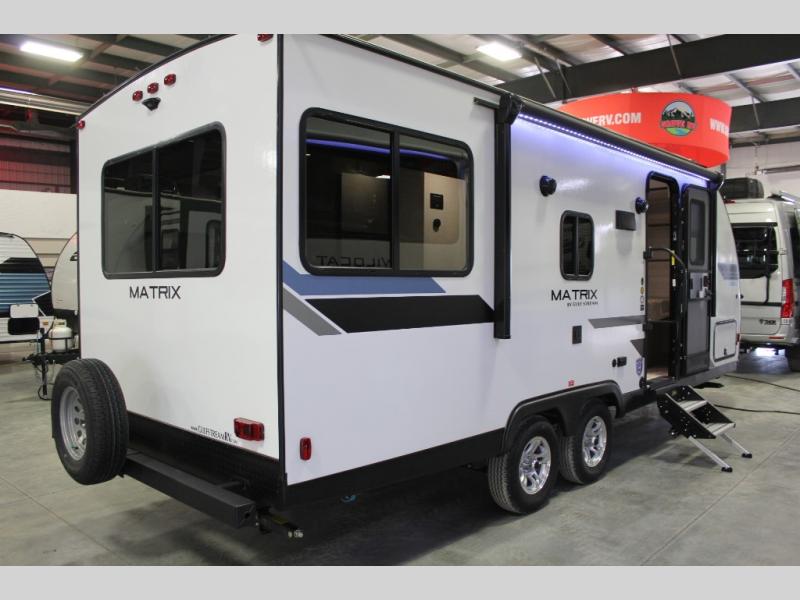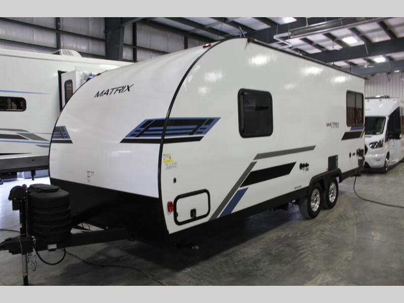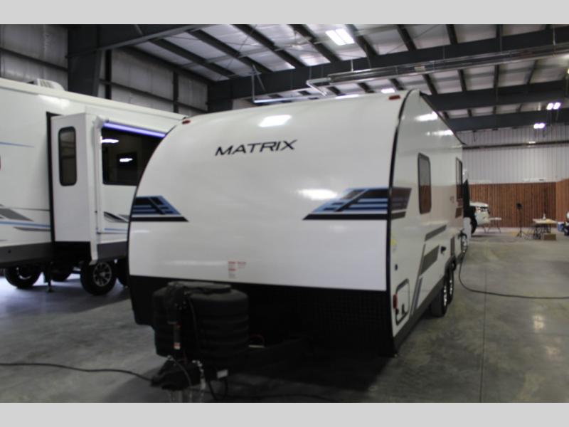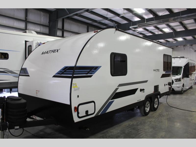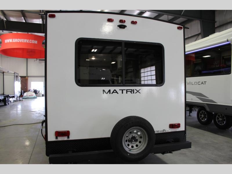 This Matrix SVT travel trailer will make your adventures more fun! With its U-shaped dinette and front 60" x 74"queen bed, this trailer can sleep four people, and since there is also a full bathroom included in this unit, you have the extra convenience of staying fresh throughout all of your trips without having to use public facilities. There is even a skylight in the bathroom which will bring in some fresh sunshine each morning. You also won't have to grab fast food for every meal because you can make your own healthy dinners with the range in the kitchen, and the 8 cubic foot 12V refrigerator will allow you to store any leftovers for lunch tomorrow.