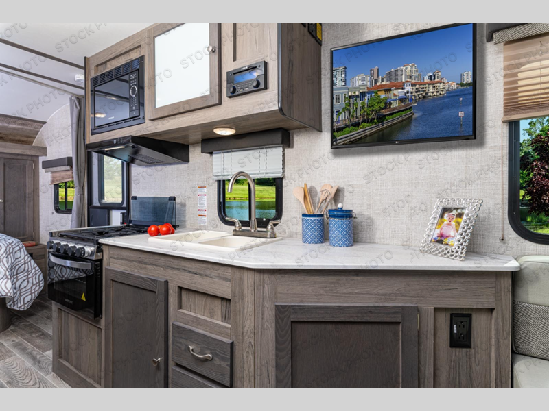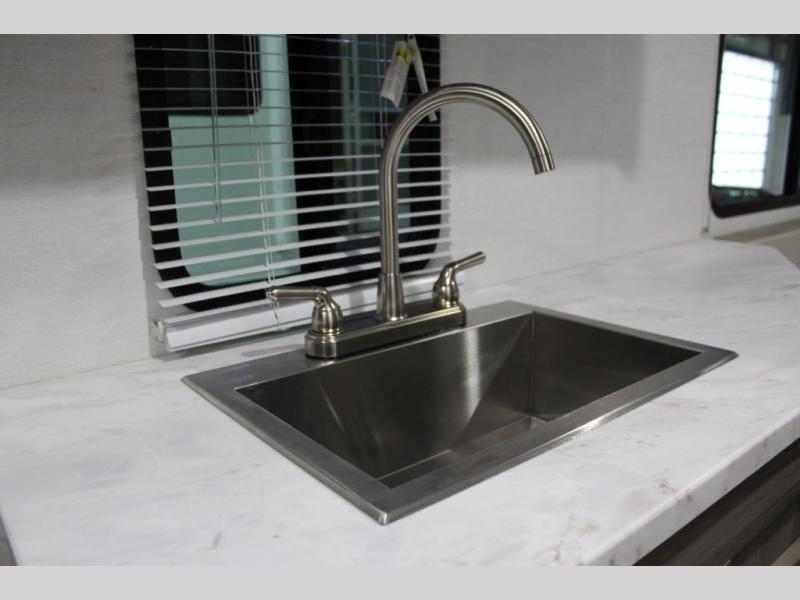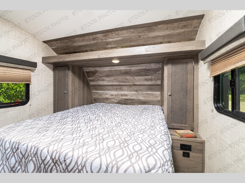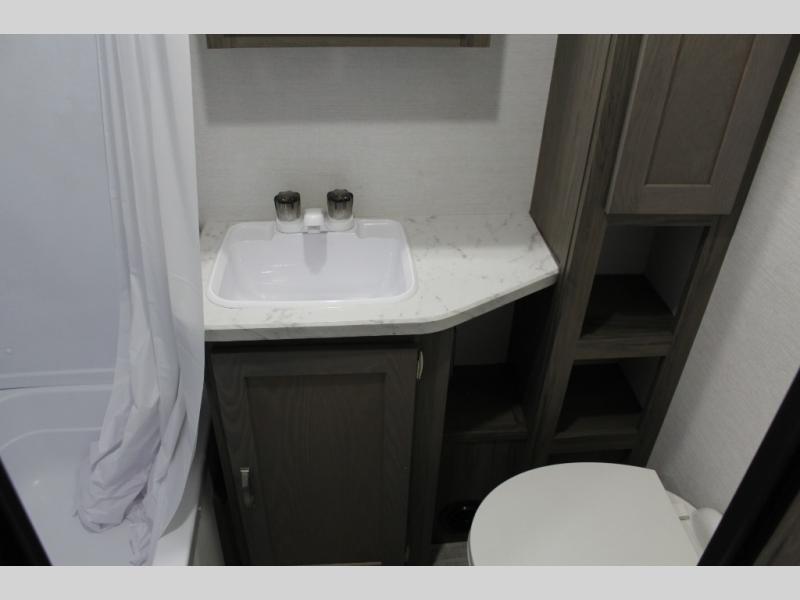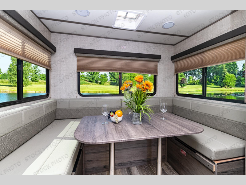 With any Matrix SVT travel trailer by Gulf Stream, the lightweight fiberglass sidewalls with Azdel will provide an easy to tow RV that offers a balance of value and comfort throughout. There are also deluxe slam-latch luggage doors, black radius tinted safety windows, and a one-piece vinyl roof for added durability. Inside, you'll find designer window treatments, easy-care vinyl flooring, and solid wood cabinet stiles. Each model also includes the SVT Package that includes a tankless water heater, night shades, a power tongue jack, and many more convenient features.