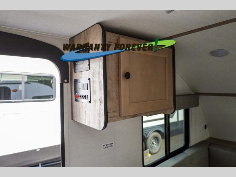Each one of these Gulf Stream RV Trail Boss teardrop trailers are incredibly light and nimble in a rugged package! The all-terrain radial tires will take you off the beaten path, and the front and side diamond plate rock guard will protect your unit from road debris. Included in the Teton package is a smooth front, a lift kit with heavy duty tires, electric brakes, a solid entry step to safely enter, and a 100W roof-mount solar panel with controller so you can go off grid. Stay cool on a summer day with the air conditioner and warm on a cool day with the 19,000 BTU gas furnace. You will also appreciate the omni-directional rooftop TV antenna and multiple 110V and USB power outlets to keep everything charged. Start your greatest adventures today!