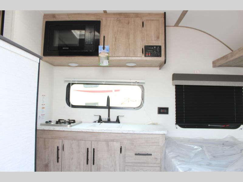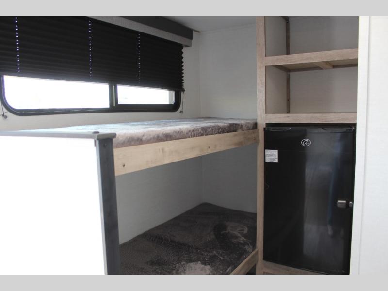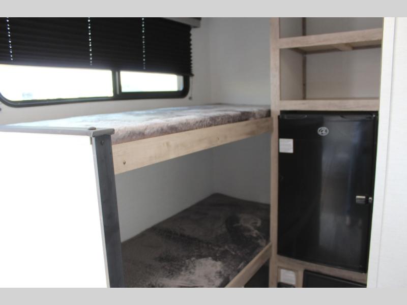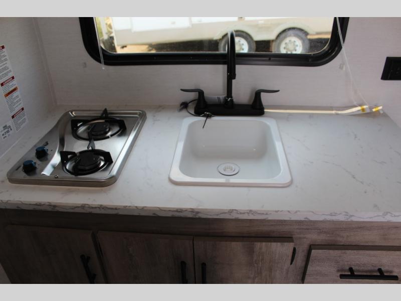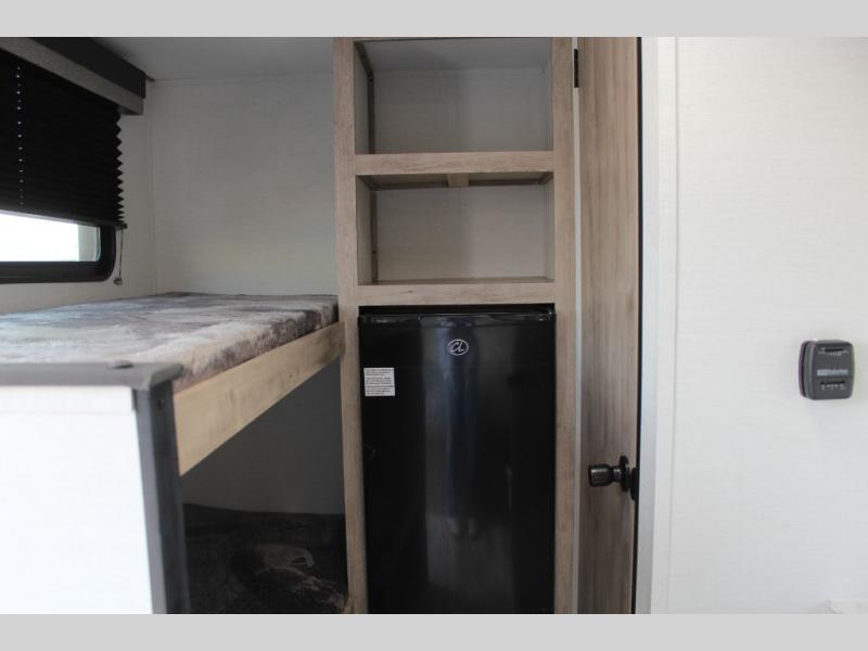 This travel trailer is ideal for families seeking adventure and relaxation! The incredible microwave and refrigerator simplify meal planning, while the two-burner cooktop lets you cook up delicious meals for the whole family. The bunk beds are a hit with kids, providing a fun and cozy sleeping space, while the comfortable bed is perfect for parents to unwind. Ample storage space is available, including flip-up storage and overhead shelves, keeping your belongings organized and within reach.