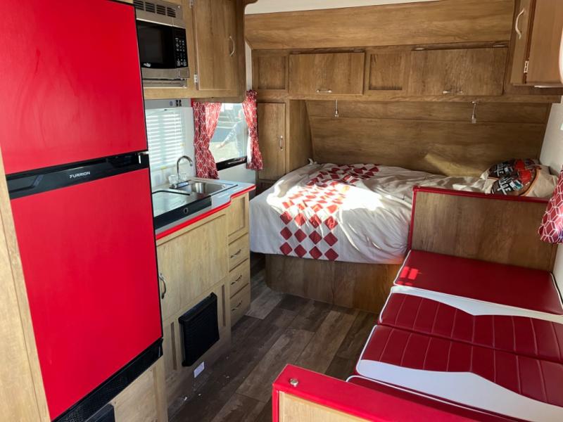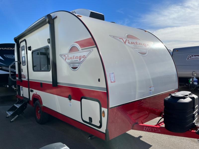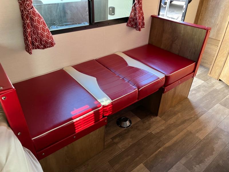 With any Vintage Cruiser by Gulf Stream you will be taken back to the fun of the 50's with vintage exterior graphics and classic interiors. Each model is constructed with a six-sided welded aluminum frame, vacuum bonded sidewalls with Azdel, and a vintage painted bumper you are sure to love. The Vintage Cruiser travel trailers include high-performance vinyl flooring, LED interior ceiling lights, a seamless tub/shower surround, and vintage flat cabinet doors to name a few comforts you'll find throughout. Some of the stand-out features found within the Vintage Package include a tankless water heater, a 100W roof-mounted solar panel with a controller, Goodyear Endurance tires, and more!