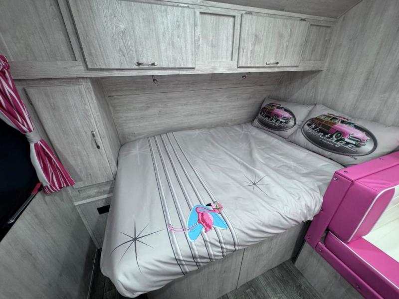 With any Vintage Cruiser by Gulf Stream you will be taken back to the fun of the 50's with vintage exterior graphics and classic interiors. Each model is constructed with a six-sided welded aluminum frame, vacuum bonded sidewalls with Azdel, and a vintage painted bumper you are sure to love. The Vintage Cruiser travel trailers include high-performance vinyl flooring, LED interior ceiling lights, a seamless tub/shower surround, and vintage flat cabinet doors to name a few comforts you'll find throughout. Some of the stand-out features found within the Vintage Package include a tankless water heater, a 100W roof-mounted solar panel with a controller, Goodyear Endurance tires, and more!
