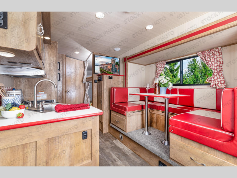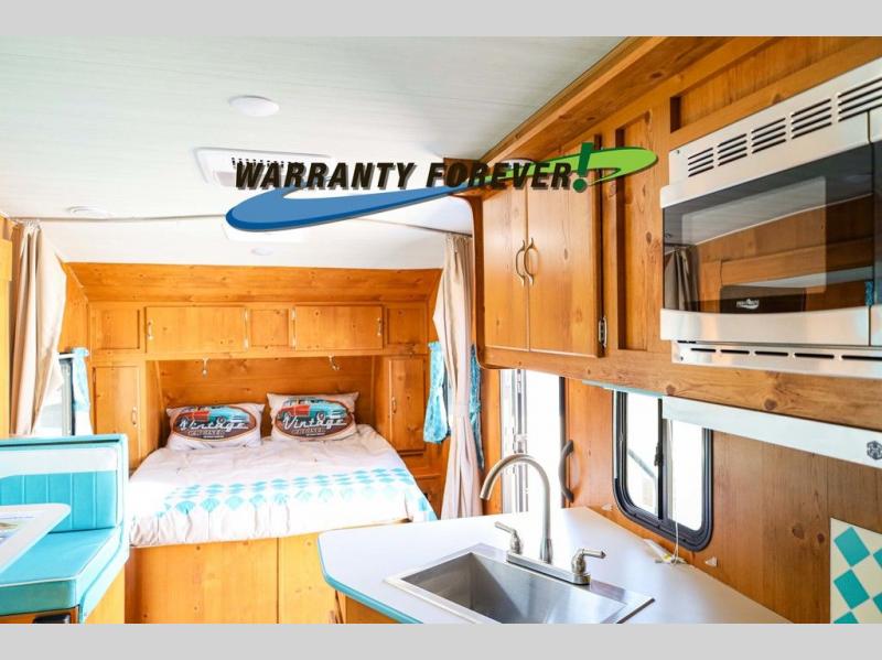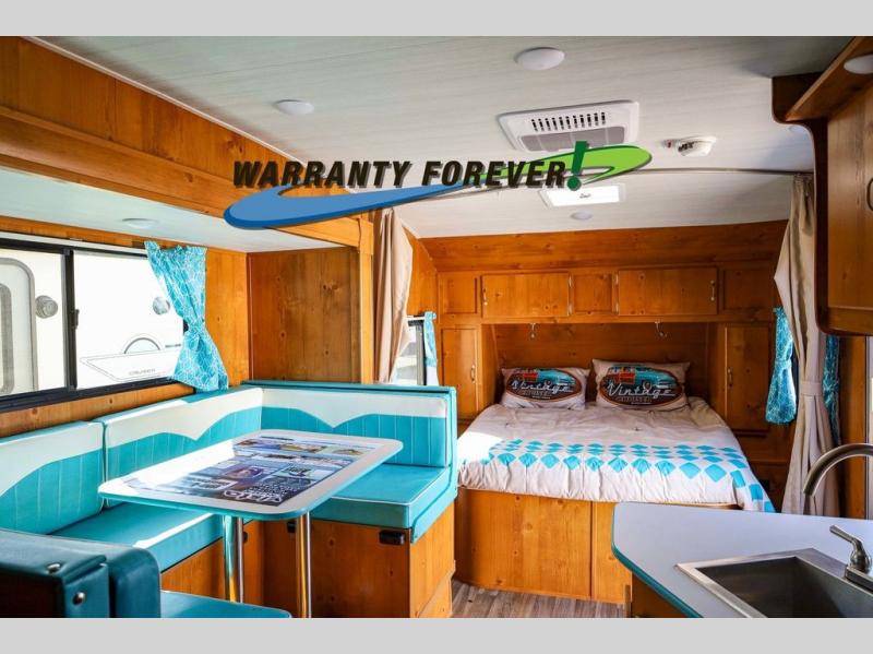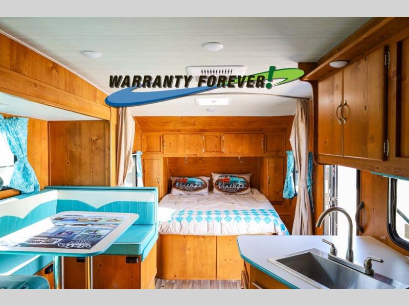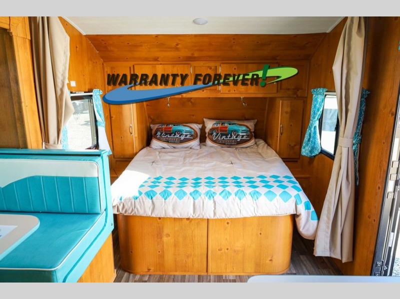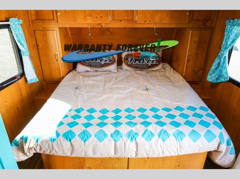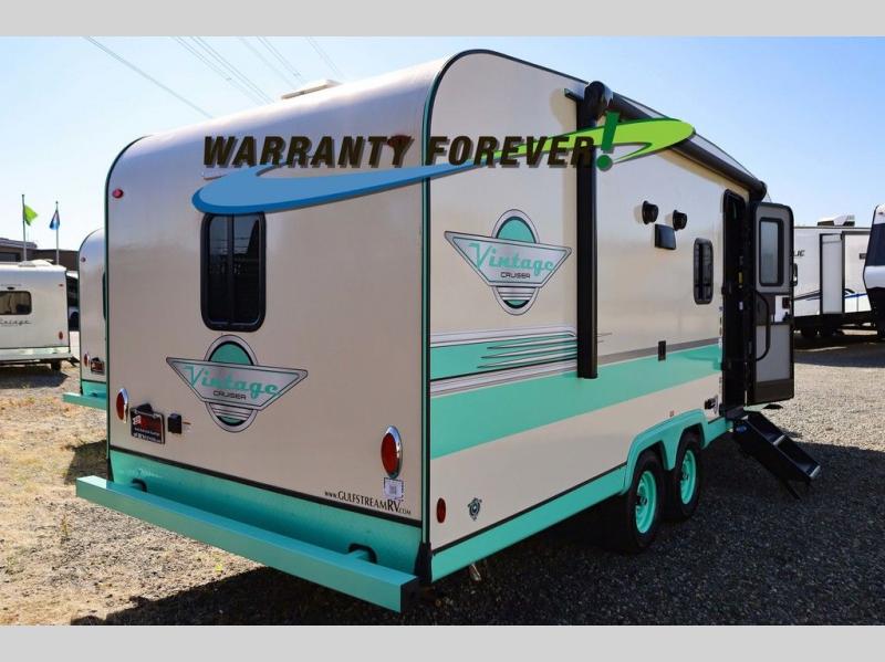 With any Vintage Cruiser by Gulf Stream you will be taken back to the fun of the 50's with vintage exterior graphics and classic interiors. Each model is constructed with a six-sided welded aluminum frame, vacuum bonded sidewalls with Azdel, and a vintage painted bumper you are sure to love. The Vintage Cruiser travel trailers include high-performance vinyl flooring, LED interior ceiling lights, a seamless tub/shower surround, and vintage flat cabinet doors to name a few comforts you'll find throughout. Some of the stand-out features found within the Vintage Package include a tankless water heater, a 100W roof-mounted solar panel with a controller, Goodyear Endurance tires, and more!