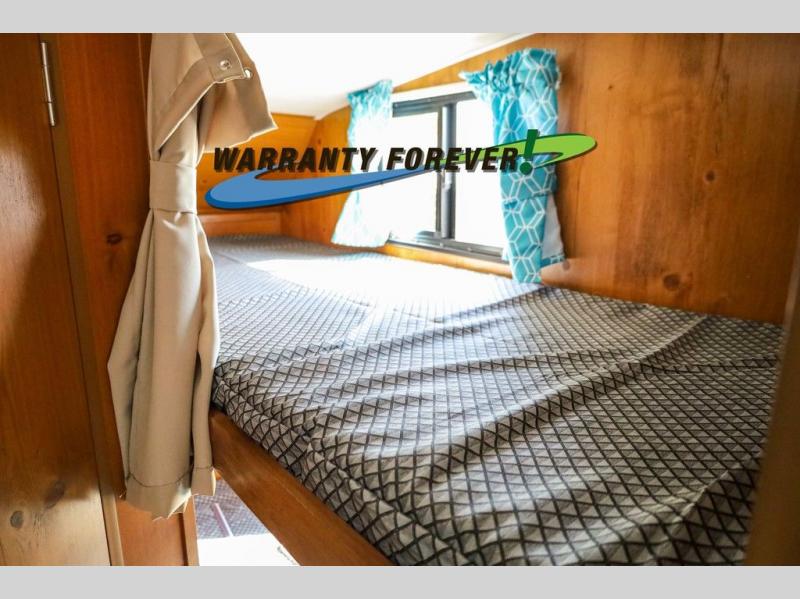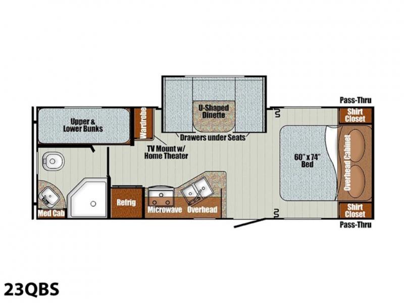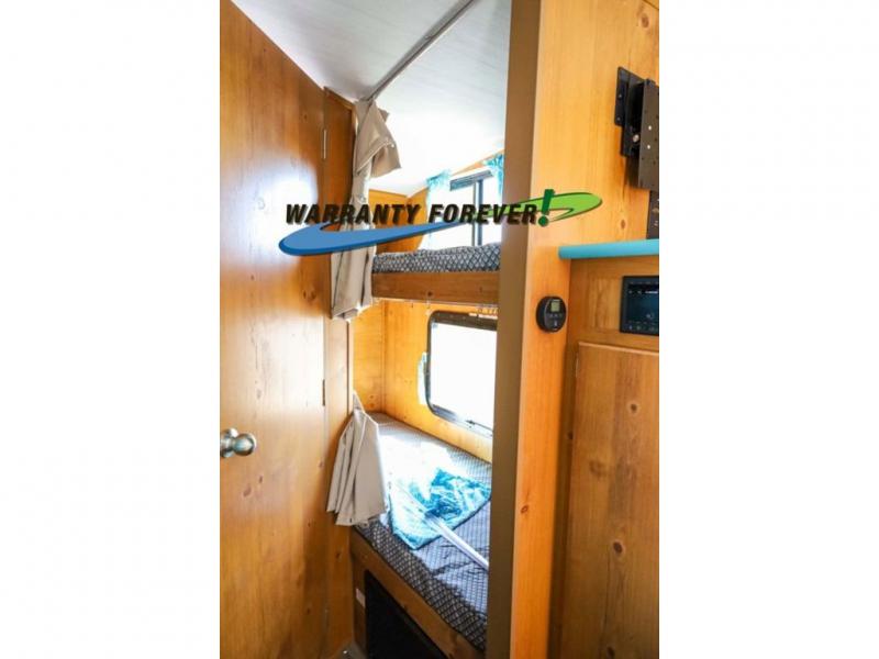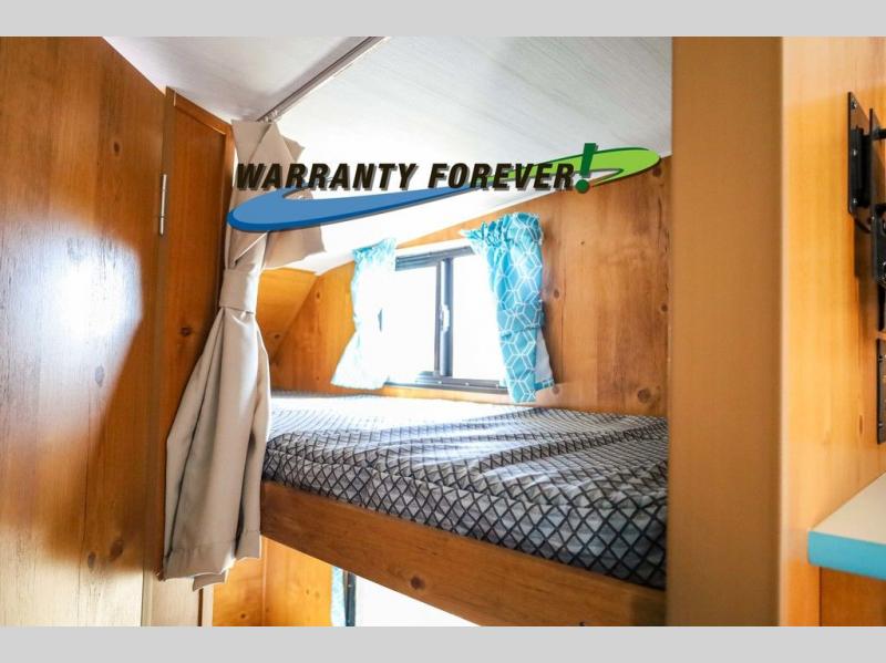 Whether you spend your days outdoors under the electric awning with LED lights, or indoors around the U-shaped dinette slide, you'll love every camping trip in this travel trailer. Prepare meals on the three burner cooktop, or use the microwave oven, plus there is an 8 cu. ft. 12V refrigerator for perishables. The bunk beds are sure to be a big hit with the kids or your guests, and you'll have your own RV queen bed up front with a privacy curtain and dual shirt closets. And of course, there is a full bath on board so you can stay clean throughout your trip!