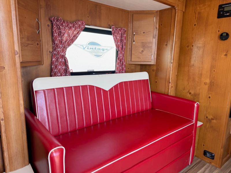 With any Vintage Cruiser by Gulf Stream you will be taken back to the fun of the 50's with vintage exterior graphics and classic interiors. Each model is constructed with a six-sided welded aluminum frame, vacuum bonded sidewalls with Azdel, and a vintage painted bumper you are sure to love. The Vintage Cruiser travel trailers include high-performance vinyl flooring, LED interior ceiling lights, a seamless tub/shower surround, and vintage flat cabinet doors to name a few comforts you'll find throughout. Some of the stand-out features found within the Vintage Package include a tankless water heater, a 100W roof-mounted solar panel with a controller, Goodyear Endurance tires, and more!
