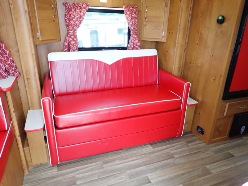 With any Vintage Cruiser by Gulf Stream you will be taken back to the fun of the 50's with vintage exterior graphics and classic interiors. Each model is constructed with a six-sided welded aluminum frame, vacuum bonded sidewalls with Azdel, and a vintage painted bumper you are sure to love. The Vintage Cruiser travel trailers include high-performance vinyl flooring, LED interior ceiling lights, a seamless tub/shower surround, and vintage flat cabinet doors to name a few comforts you'll find throughout. Some of the stand-out features found within the Vintage Package include a tankless water heater, a 100W roof-mounted solar panel with a controller, Goodyear Endurance tires, and more!