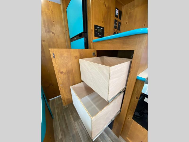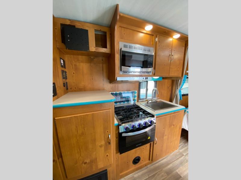 Fully Equipped Kitchen – Includes a 3-burner cooktop, microwave, and 8 cu. ft. 12V refrigerator