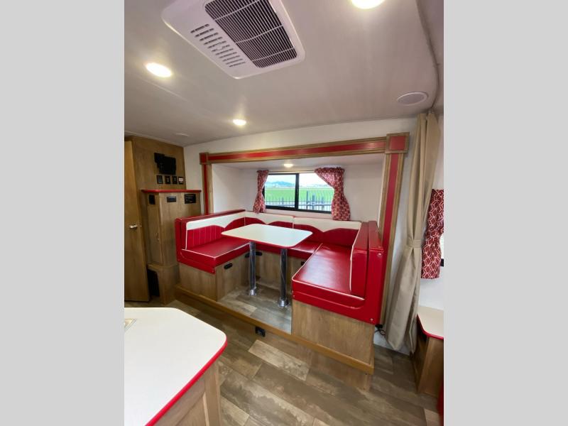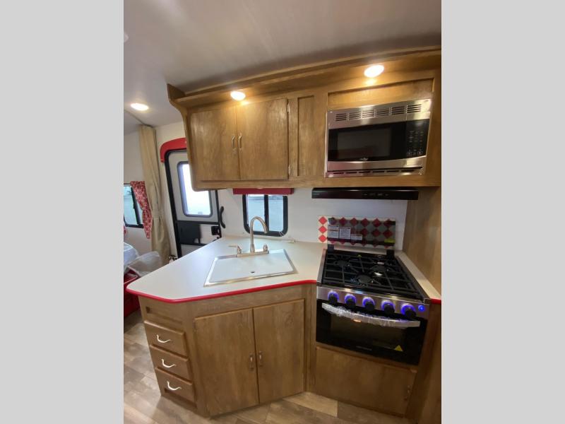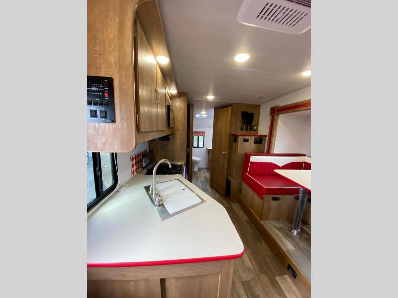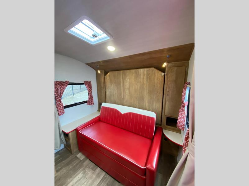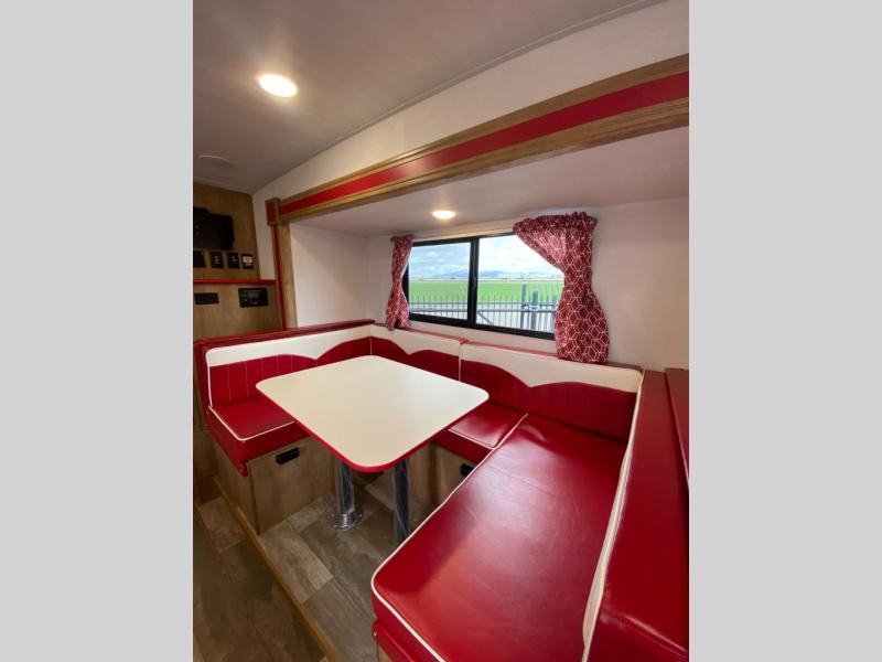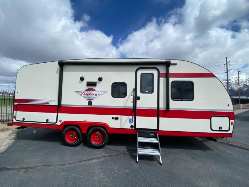 With any Vintage Cruiser by Gulf Stream you will be taken back to the fun of the 50's with vintage exterior graphics and classic interiors. Each model is constructed with a six-sided welded aluminum frame, vacuum bonded sidewalls with Azdel, and a vintage painted bumper you are sure to love. The Vintage Cruiser travel trailers include high-performance vinyl flooring, LED interior ceiling lights, a seamless tub/shower surround, and vintage flat cabinet doors to name a few comforts you'll find throughout. Some of the stand-out features found within the Vintage Package include a tankless water heater, a 100W roof-mounted solar panel with a controller, Goodyear Endurance tires, and more!
