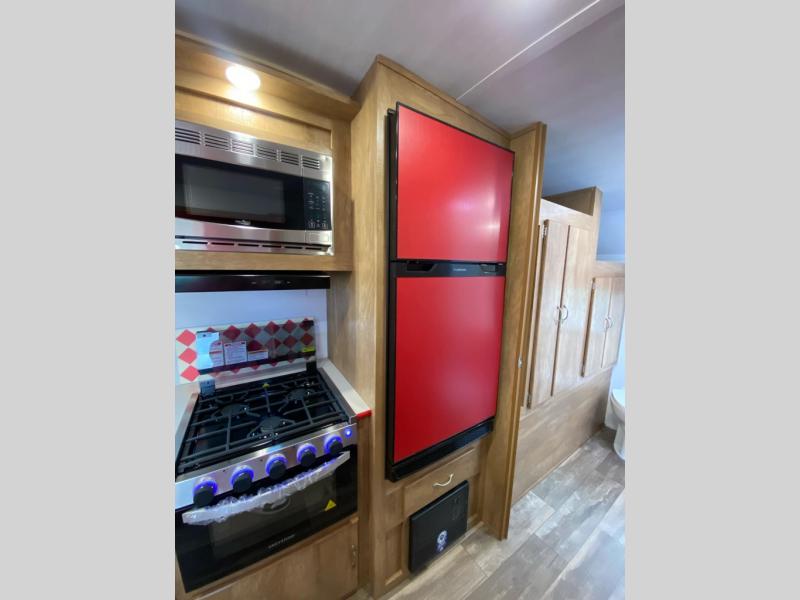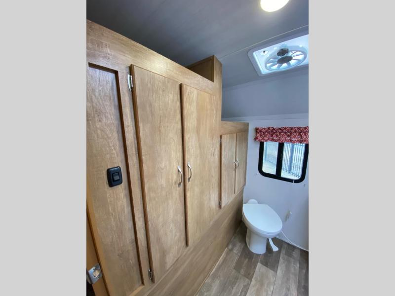 Are you looking for a classic travel trailer with more space and comfort? Look no further than this spacious travel trailer for all your adventures. A front semi-private bedroom with a privacy curtain will allow you your own space on the RV queen Murphy bed when the jack knife sofa isn't being used. The chef of your group can prepare breakfast on the cooktop and your crew can dine around the U-shaped dinette within the slide out. There are also under-seat drawers for extra blankets or board games. And check out the exterior with an outdoor snack kitchen, a pass-through storage, and an electric awning with LED lights!