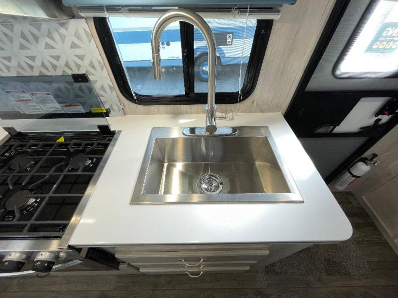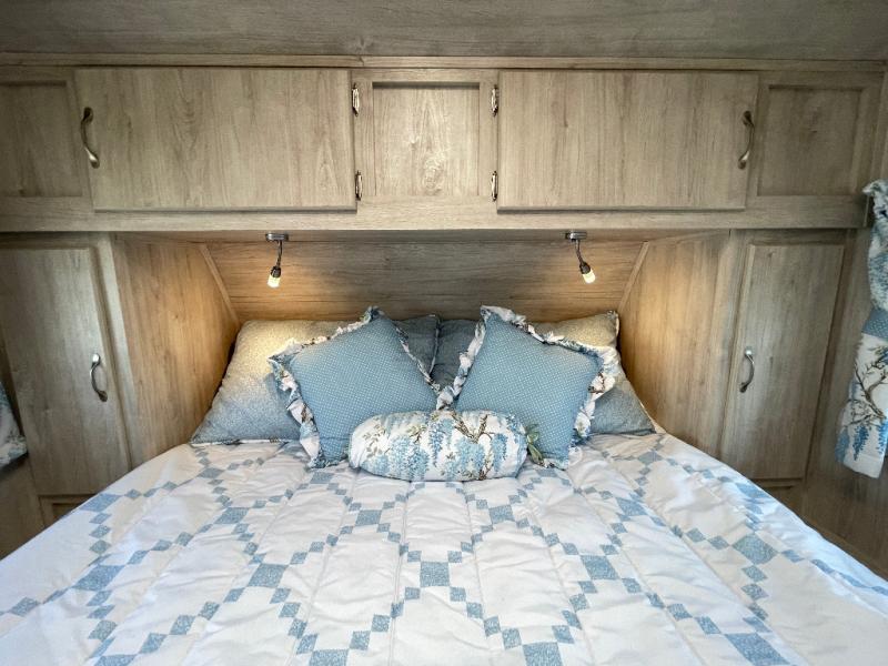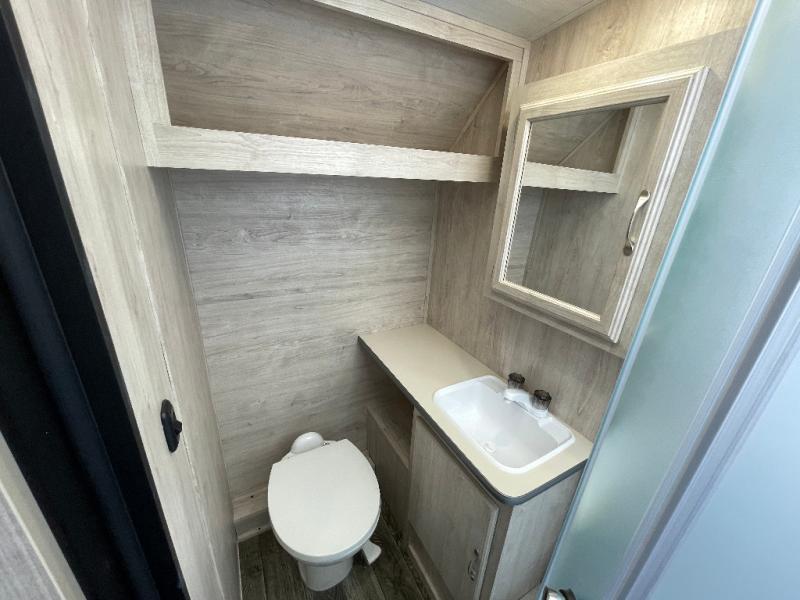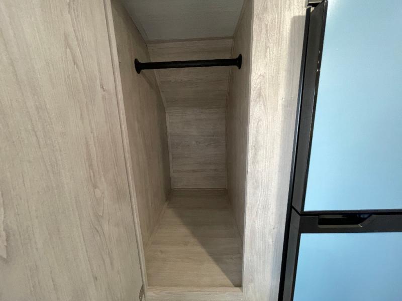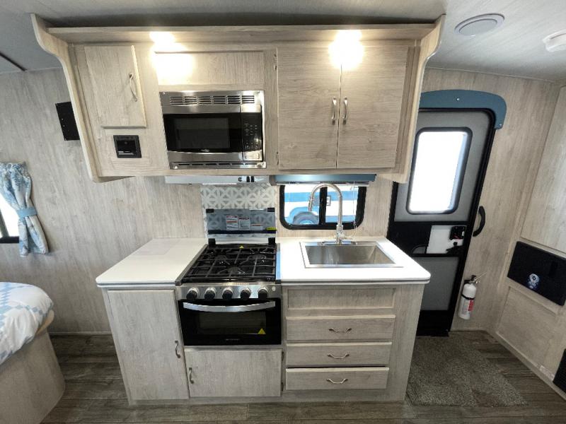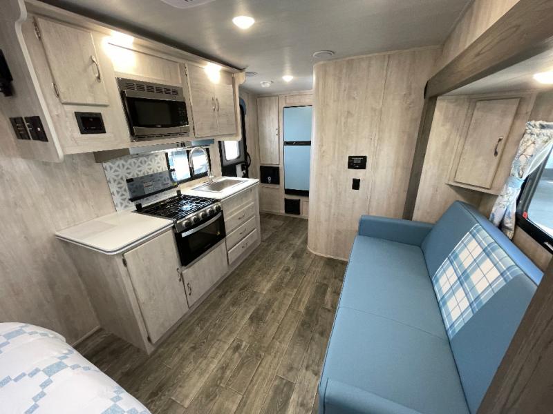 You'll enjoy every minute spent in this roomy travel trailer for four. The sofa bed slide with a table in front of it will provide more space, plus an area to relax, eat, and sleep a guest or two. A front RV queen bed will make this model feel more like home, especially with dual shirt closets on either side of the bed for your clothes. Whip up your best meals on the cooktop or use the microwave oven if you're on the go. This model also includes an 8-cu. ft. 12V refrigerator and a pantry/closet for plenty of storage space!