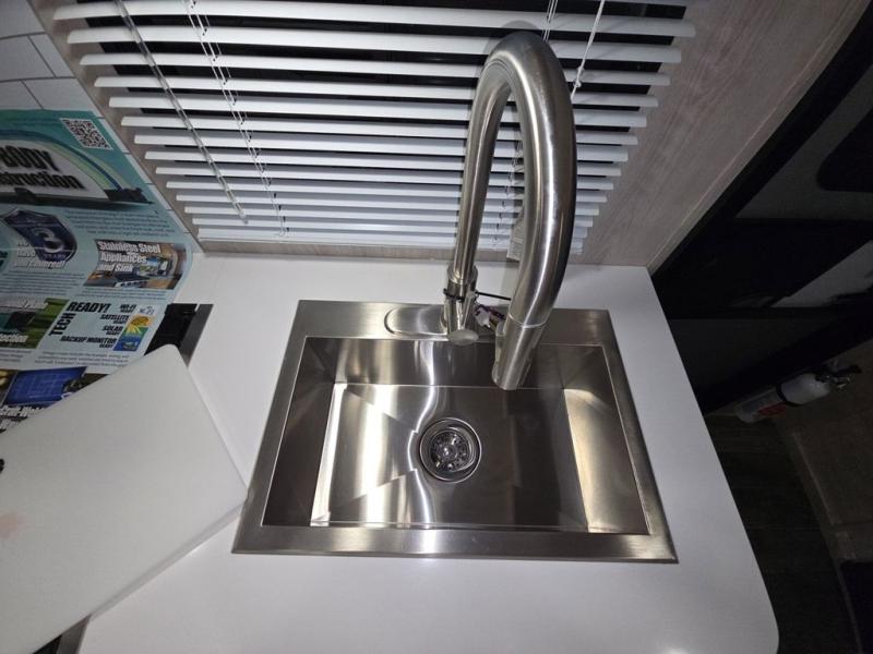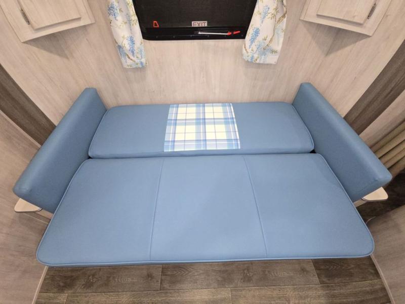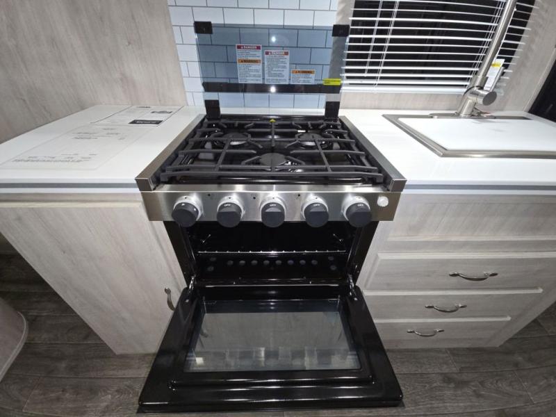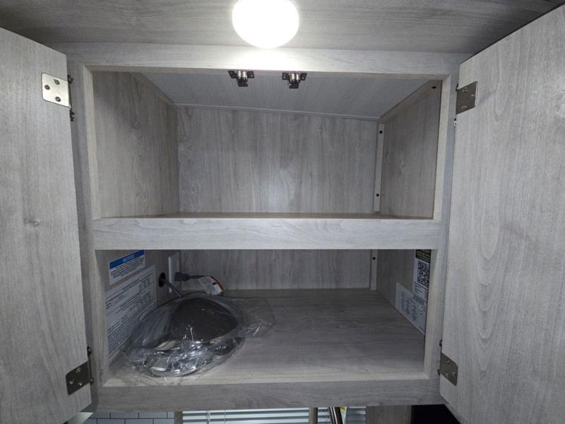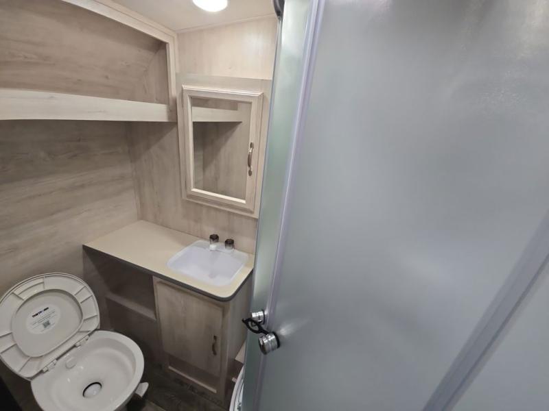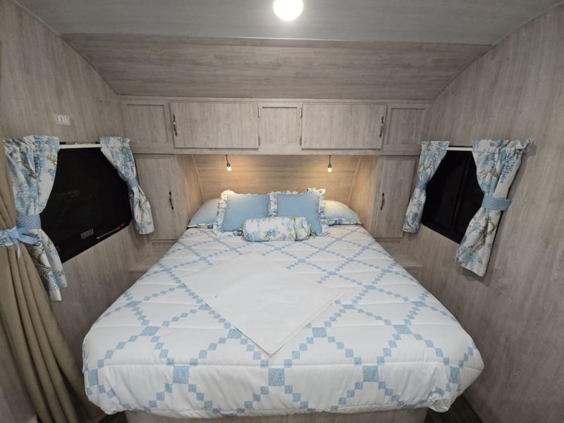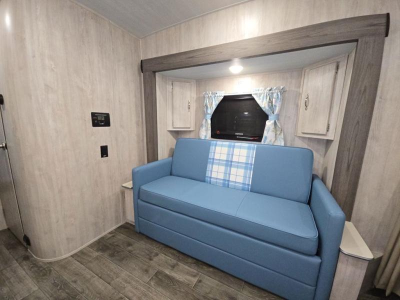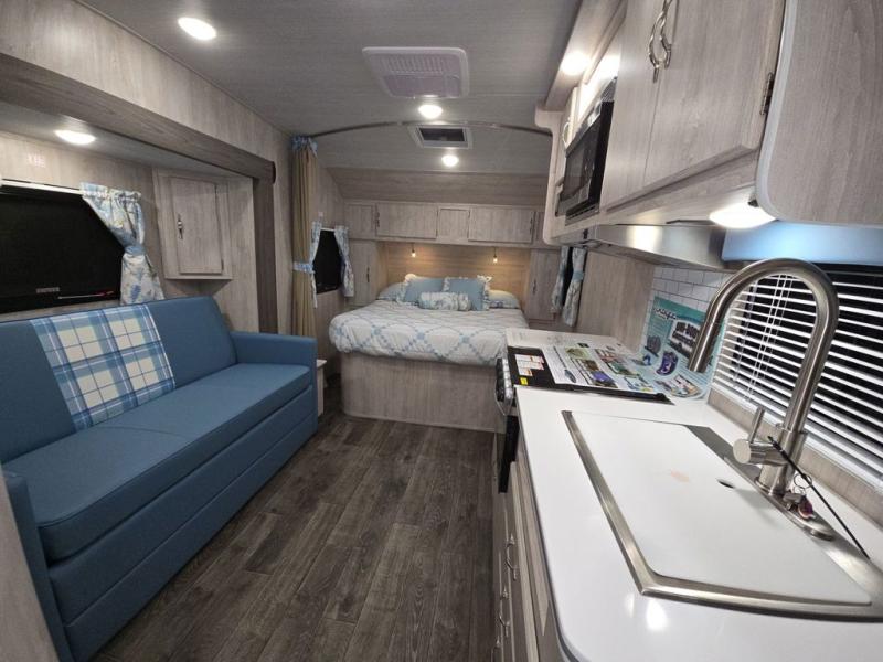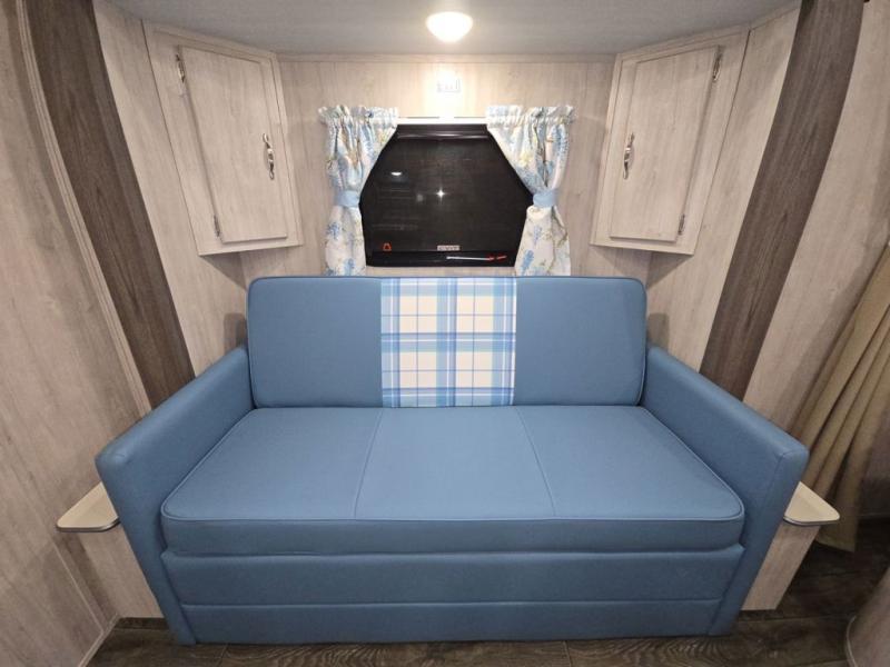 You'll enjoy every minute spent in this roomy travel trailer for four. The sofa bed slide with a table in front of it will provide more space, plus an area to relax, eat, and sleep a guest or two. A front RV queen bed will make this model feel more like home, especially with dual shirt closets on either side of the bed for your clothes. Whip up your best meals on the cooktop or use the microwave oven if you're on the go. This model also includes an 8-cu. ft. 12V refrigerator and a pantry/closet for plenty of storage space!