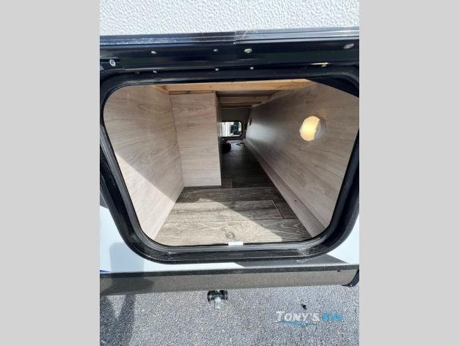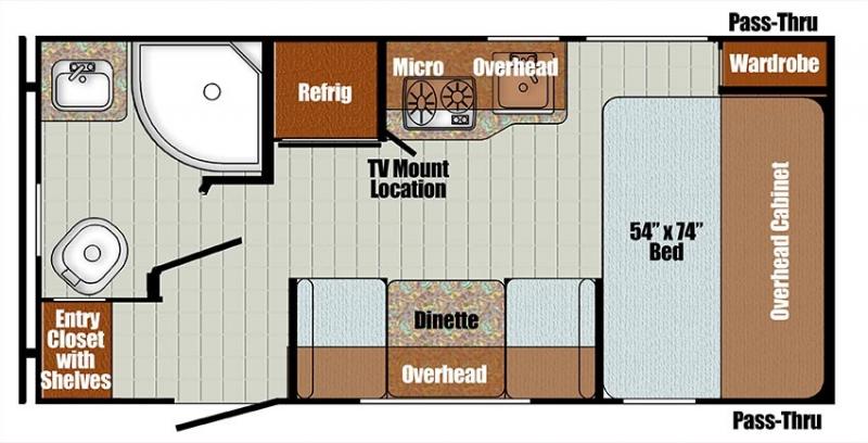 Enjoy a fun weekend camping with your spouse in this travel trailer! It features an entry closet with shelves next to the rear corner bathroom which has a radius shower and a high velocity fan to eliminate any unwanted steam. Across from the booth dinette is a TV mount location, a two burner cooktop, a sink with a cover, and an 8 cu. ft. 12V refrigerator to store your catch of the day. When you're ready to wind down a fun day, head to the front 54" x 74" bed to relax!