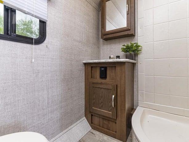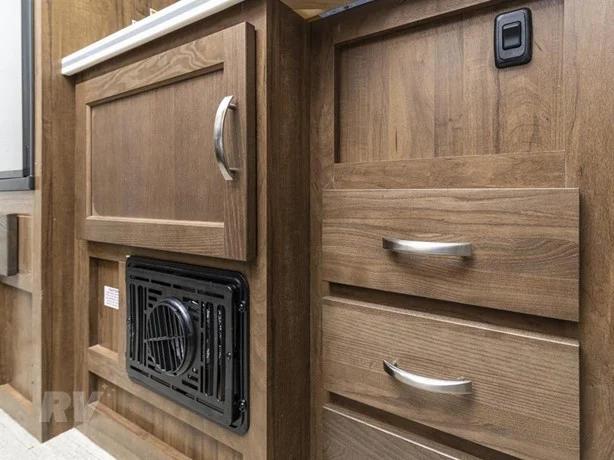 With any Vista Cruiser by Gulf Stream, you will enjoy premium quality in a compact and easy to tow travel trailer. The one-piece fiberglass roof, welded aluminum frame, and vacuum-bonded sidewalls with a composite barrier layer will create a strong and durable foundation to your RV. There are also LED running lights, along with an outside spray port, an electric awning, and a power tongue jack for easy set up. A home theater stereo with Bluetooth and speakers will allow you to listen to your favorite tunes, and there are interior and exterior TV mounting brackets if you decide to bring along a television. More interior features include "Opulence River Rock" wall vinyl, designer window treatments and night shades, tile backsplash at the range, and a premium foam mattress for your comfort.