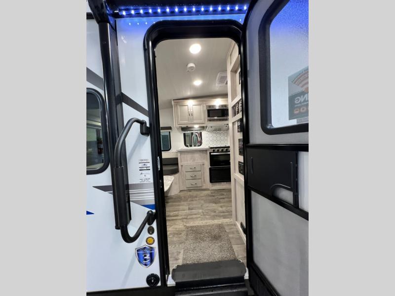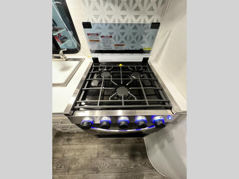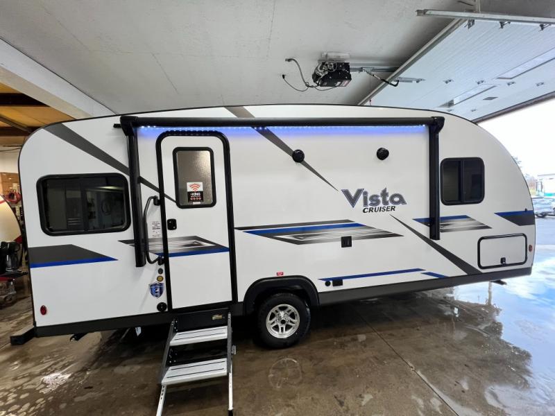 With any Vista Cruiser by Gulf Stream, you will enjoy premium quality in a compact and easy to tow travel trailer. The one-piece fiberglass roof, welded aluminum frame, and vacuum-bonded sidewalls with a composite barrier layer will create a strong and durable foundation to your RV. There are also LED running lights, along with an outside spray port, an electric awning, and a power tongue jack for easy set up. A home theater stereo with Bluetooth and speakers will allow you to listen to your favorite tunes, and there are interior and exterior TV mounting brackets if you decide to bring along a television. More interior features include "Opulence River Rock" wall vinyl, designer window treatments and night shades, tile backsplash at the range, and a premium foam mattress for your comfort.