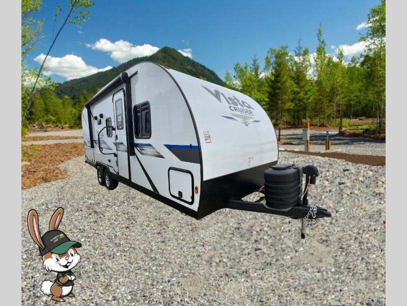 With any Vista Cruiser by Gulf Stream, you will enjoy premium quality in a compact and easy to tow travel trailer. The one-piece fiberglass roof, welded aluminum frame, and vacuum-bonded sidewalls with a composite barrier layer will create a strong and durable foundation to your RV. There are also LED running lights, along with an outside spray port, an electric awning, and a power tongue jack for easy set up. A home theater stereo with Bluetooth and speakers will allow you to listen to your favorite tunes, and there are interior and exterior TV mounting brackets if you decide to bring along a television. More interior features include "Opulence River Rock" wall vinyl, designer window treatments and night shades, tile backsplash at the range, and a premium foam mattress for your comfort.
