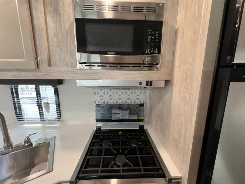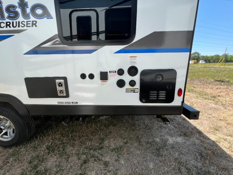 With any Vista Cruiser by Gulf Stream, you will enjoy premium quality in a compact and easy to tow travel trailer. The one-piece fiberglass roof, welded aluminum frame, and vacuum-bonded sidewalls with a composite barrier layer will create a strong and durable foundation to your RV. There are also LED running lights, along with an outside spray port, an electric awning, and a power tongue jack for easy set up. A home theater stereo with Bluetooth and speakers will allow you to listen to your favorite tunes, and there are interior and exterior TV mounting brackets if you decide to bring along a television. More interior features include "Opulence River Rock" wall vinyl, designer window treatments and night shades, tile backsplash at the range, and a premium foam mattress for your comfort.