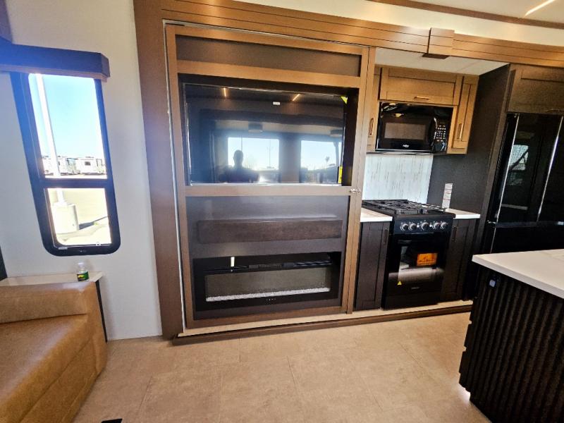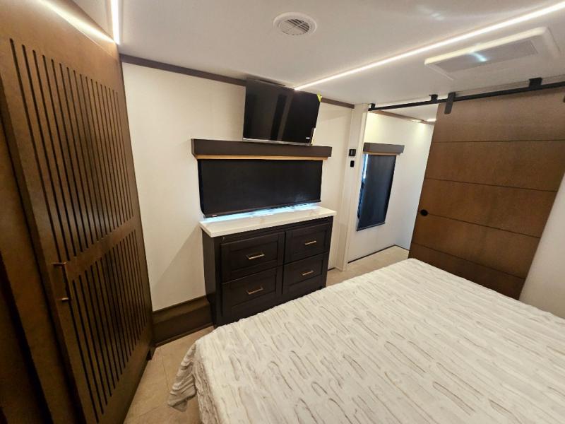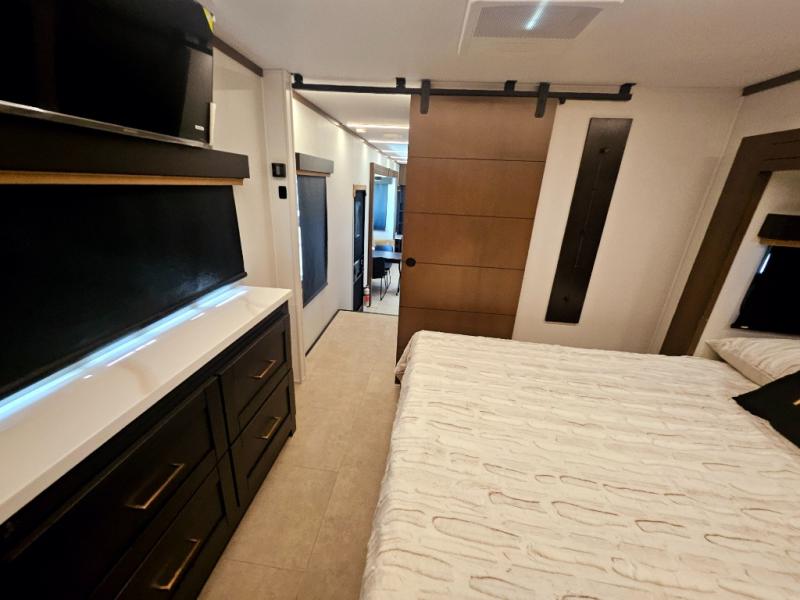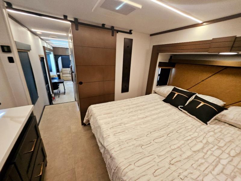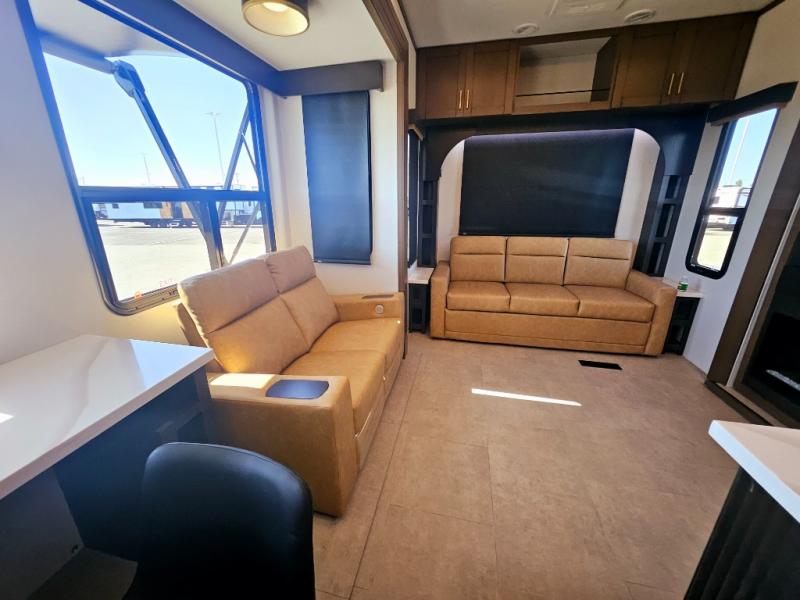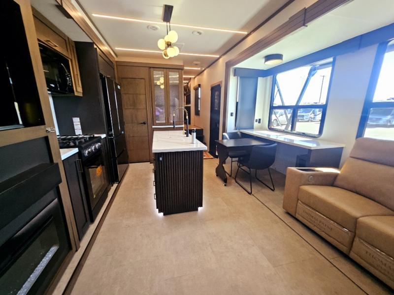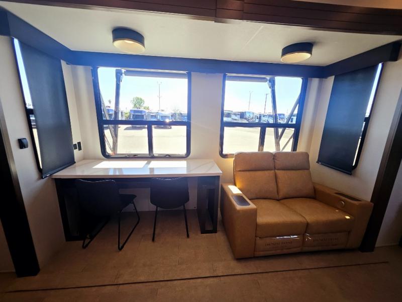 Rear Living / Theater Seating / Swing Desk / Residential King Bed / Hydraulic Leveling System /Sol 380 Watts Solar w/2000 watt Inverter