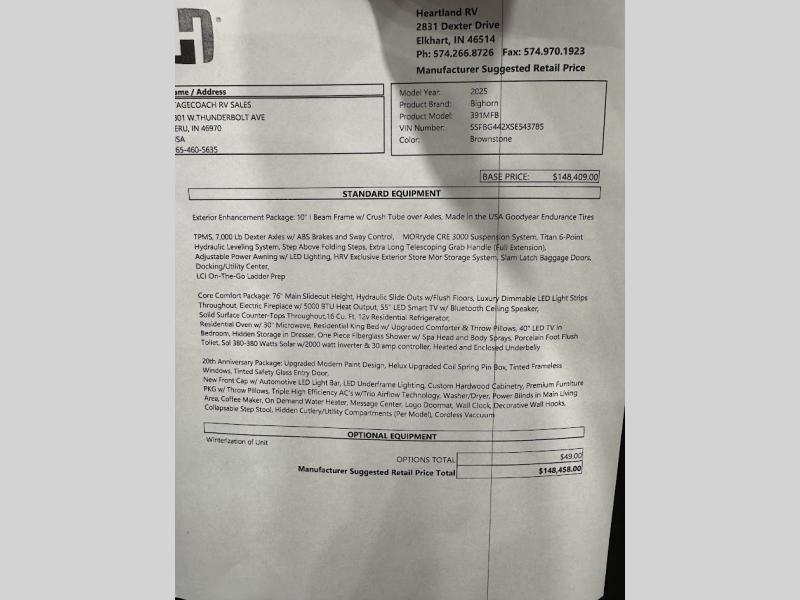 New 2025 Heartland Bighorn 391MFB Fifth Wheel