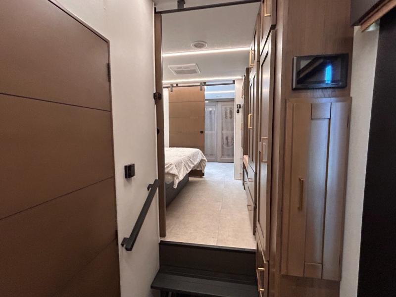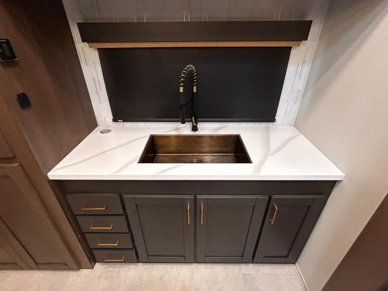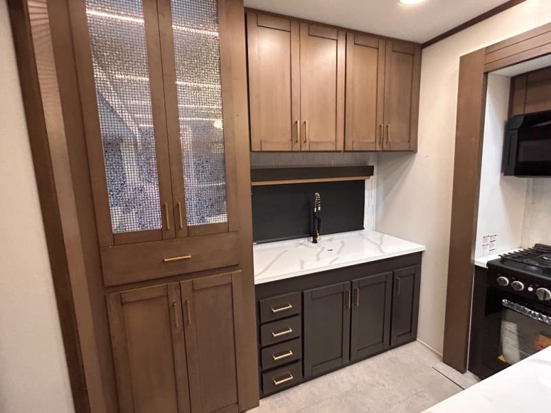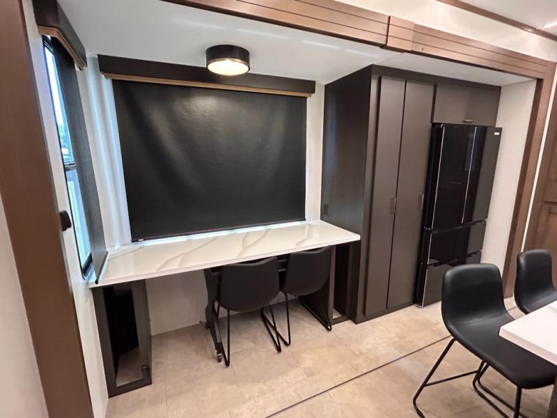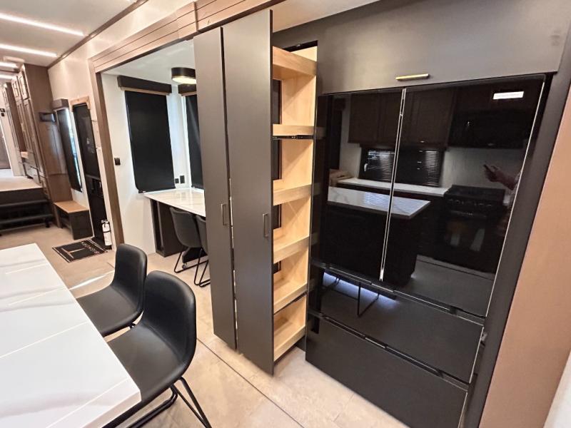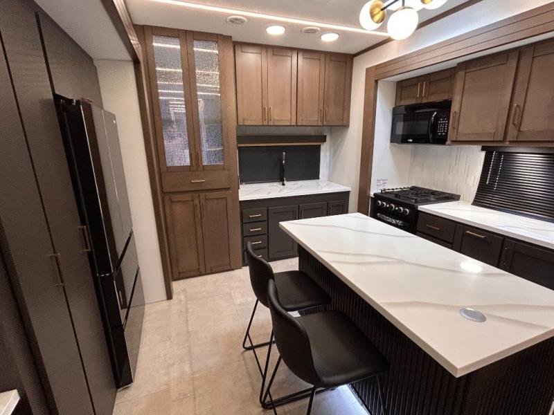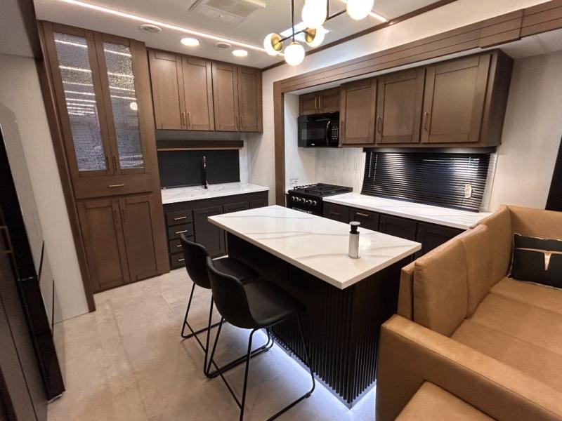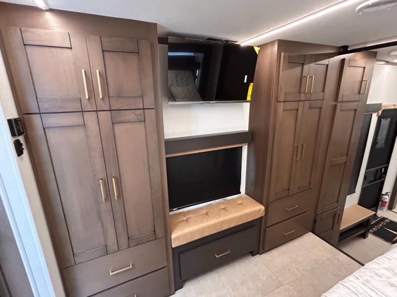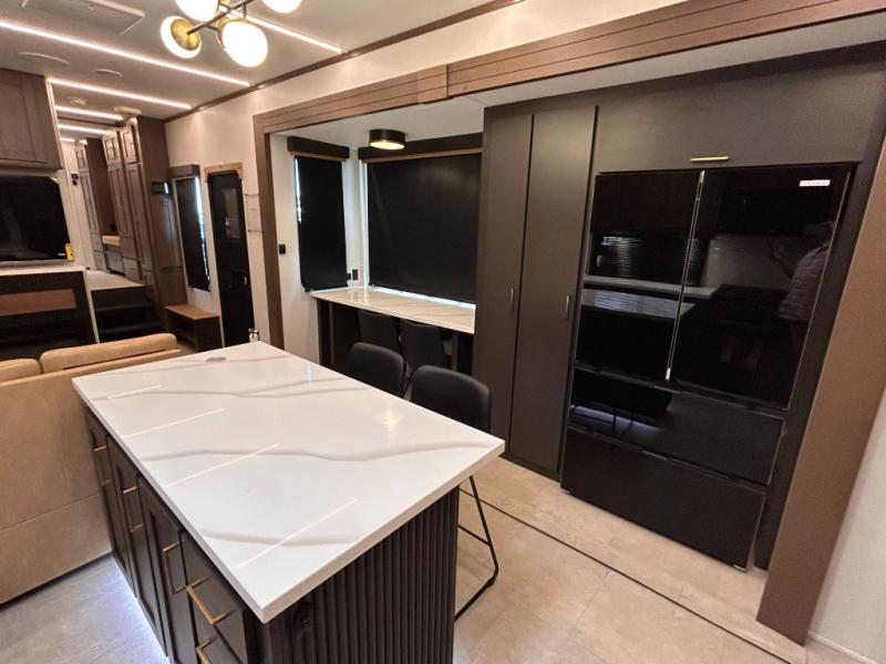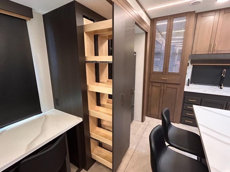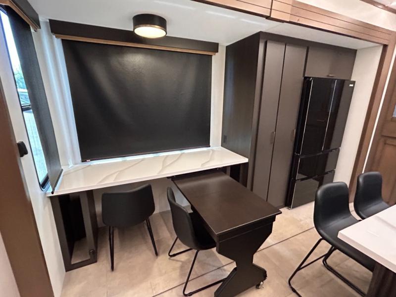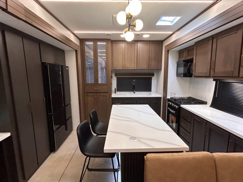 - Core Comfort Package: 76" Main Slideout Height, Hydraulic Slide Outs w/Flush Floors, Luxury Dimmable LED Light Strips Throughout, Electric Fireplace w/ 5000 BTU Heat Output, 55" LED Smart TV w/ Bluetooth Ceiling Speaker,