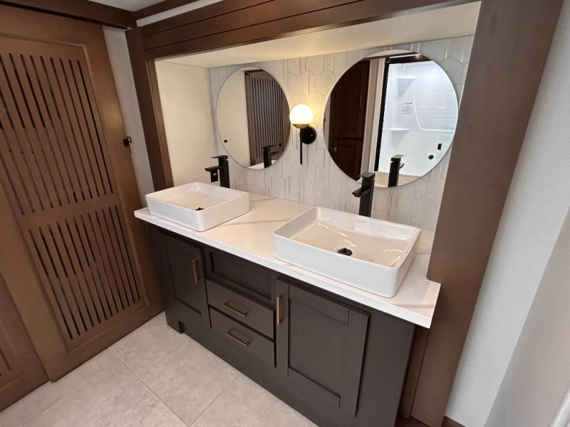 Automotive Front Cap/ Rear Kitchen/ Two Bathrooms / Front Bathroom / Sectional Sofa & Swing Desk / 380 Watts Solar w/2000 watt inverter/ Stackable Washer & Dryer