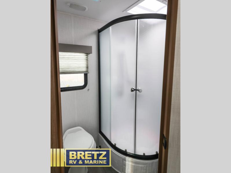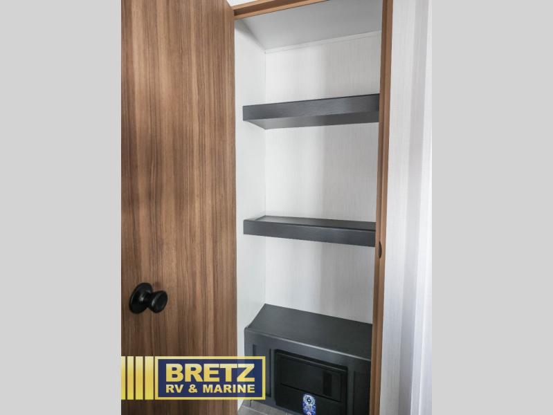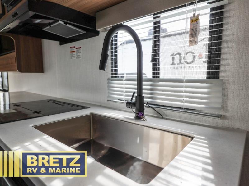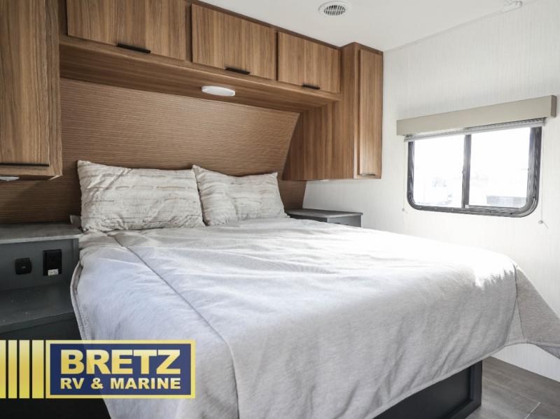 Pack your bags and hitch up this travel trailer for a fun time at the campground! The queen size bed up front offers a comfortable place to lay your head at night with wardrobes and nightstands on either side of it for your items. Prepare your best home cooked meals in the fully equipped kitchen with stainless steel appliances. The luxurious sofa is a comfy place to sit while you watch your favorite movies on the 40" LED TV. Throughout the unit is USB/USBC and 110V outlets, plus an upgraded Bluetooth interior sound system for crystal clear music. Freshen up after a fun day at the beach in the radius shower located in the rear corner bathroom!