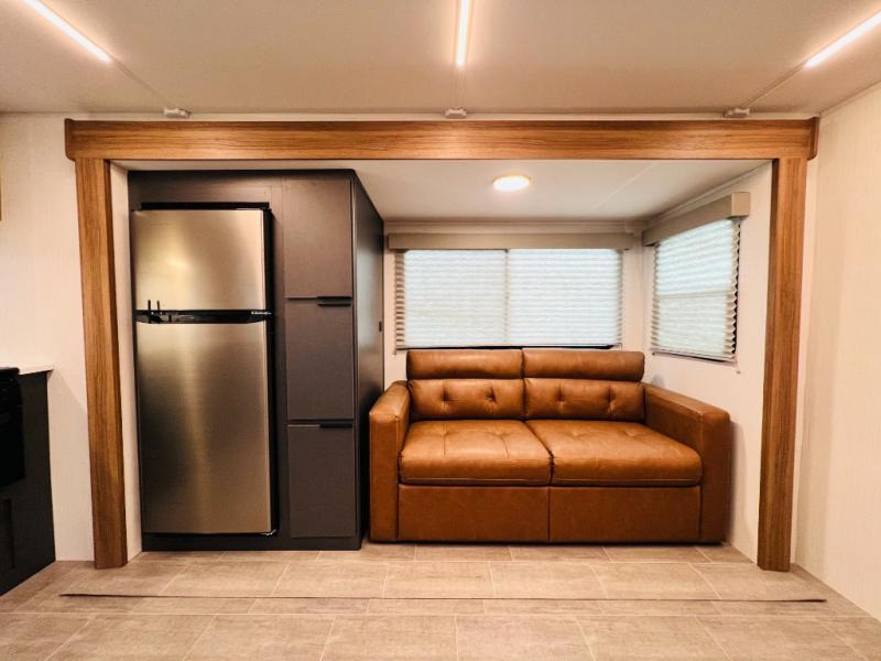Explore the open road with any one of these Heartland Corterra fifth wheels or travel trailers! They are built with a 8" I-beam, Azdel Onboard composite sidewalls, and a heated and enclosed underbelly to protect your unit's vitals. The Vault XL and color coded wiring makes it easy to navigate through it and the exclusive TRIO airflow AC system ensures maximum cooling to keep you cooled off on a hot summer day. You can safely enter and exit the unit through the deluxe tinted glass entry door with Extended Safe-T entry grab handle. The interiors abound in luxury with hidden storage throughout, a wine and/or coffee bar for entertaining, and a residential appliance package for home cooked meals everywhere you go. Come find your favorite one today!