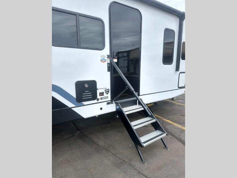 Explore the open road with any one of these Heartland Corterra fifth wheels or travel trailers! They are built with a 8" I-beam, Azdel Onboard composite sidewalls, and a heated and enclosed underbelly to protect your unit's vitals. The Vault XL and color coded wiring makes it easy to navigate through it and the exclusive TRIO airflow AC system ensures maximum cooling to keep you cooled off on a hot summer day. You can safely enter and exit the unit through the deluxe tinted glass entry door with Extended Safe-T entry grab handle. The interiors abound in luxury with hidden storage throughout, a wine and/or coffee bar for entertaining, and a residential appliance package for home cooked meals everywhere you go. Come find your favorite one today!