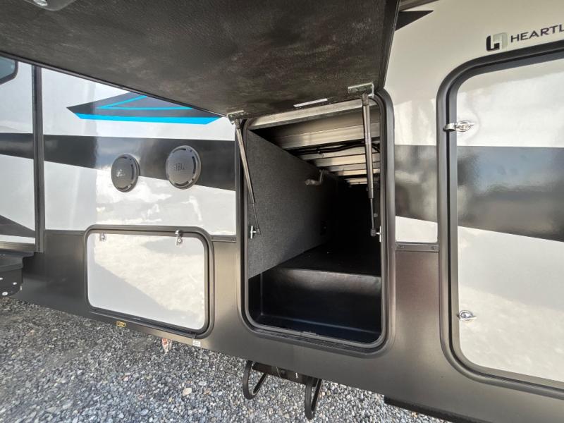 Satisfy your wanderlust with a Heartland Cyclone fifth wheel toy hauler! You won't have to sacrifice any luxury either with indulgent features like the king bedroom suite with an exclusive East to West bed tilt system with 30% more floor space, Stor-Mor three-sided access to the basement with 30% more storage capacity, and Step Caddy folding patio step for better stability as you enter or exit the patio. The industry first Grill and Go 25" residential pull out three burner griddle combo comes on models with an exterior kitchen for an easier cooking experience. Full height shaker cabinetry provides 25% more storage space so you can bring more camping necessities with you. If you like to dry camp longer then you will appreciate the industry's largest 150 gallons fresh water tanks. Come find the perfect model for you today!
