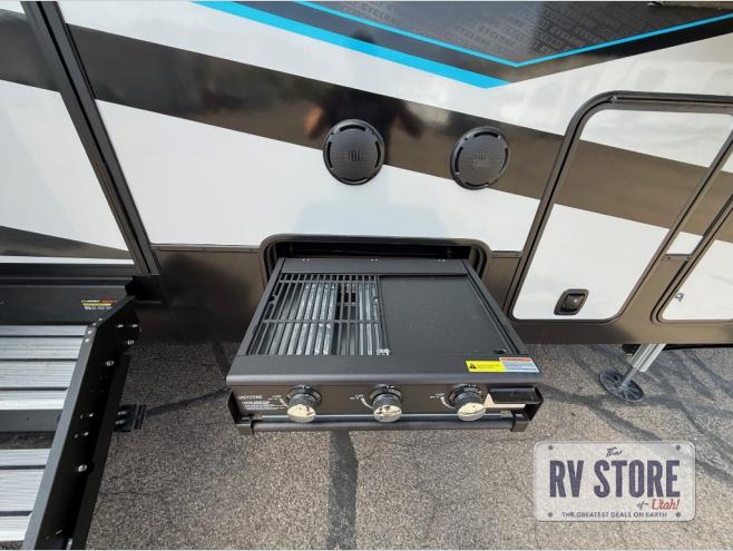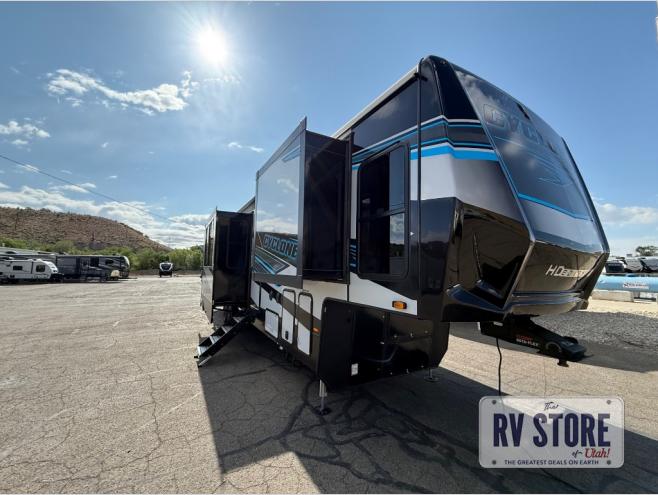 Satisfy your wanderlust with a Heartland Cyclone fifth wheel toy hauler! You won't have to sacrifice any luxury either with indulgent features like the king bedroom suite with an exclusive East to West bed tilt system with 30% more floor space, Stor-Mor three-sided access to the basement with 30% more storage capacity, and Step Caddy folding patio step for better stability as you enter or exit the patio. The industry first Grill and Go 25" residential pull out three burner griddle combo comes on models with an exterior kitchen for an easier cooking experience. Full height shaker cabinetry provides 25% more storage space so you can bring more camping necessities with you. If you like to dry camp longer then you will appreciate the industry's largest 150 gallons fresh water tanks. Come find the perfect model for you today!