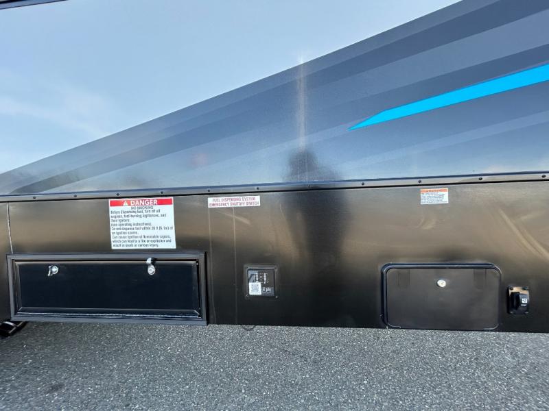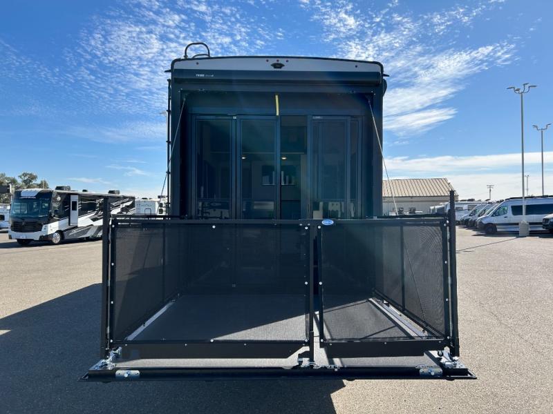 - HD Exterior Package: 5.5 Yamaha Generator, 330 Solar Package w/6 Inverted Plugs, 7000 lbs. Dexter Axles, 3000 CRE Suspension, Rear & Side Camera Prep, HD 2500 LBS Garage D-Ring Tie Downs, Rear Elect Queen Bed w/Convertible Sofa, Outdoor Shower, LP Quick Connect Folding Roof Ladder, Dual Side Awnings, 60 Gallon Combined Fueling Station.