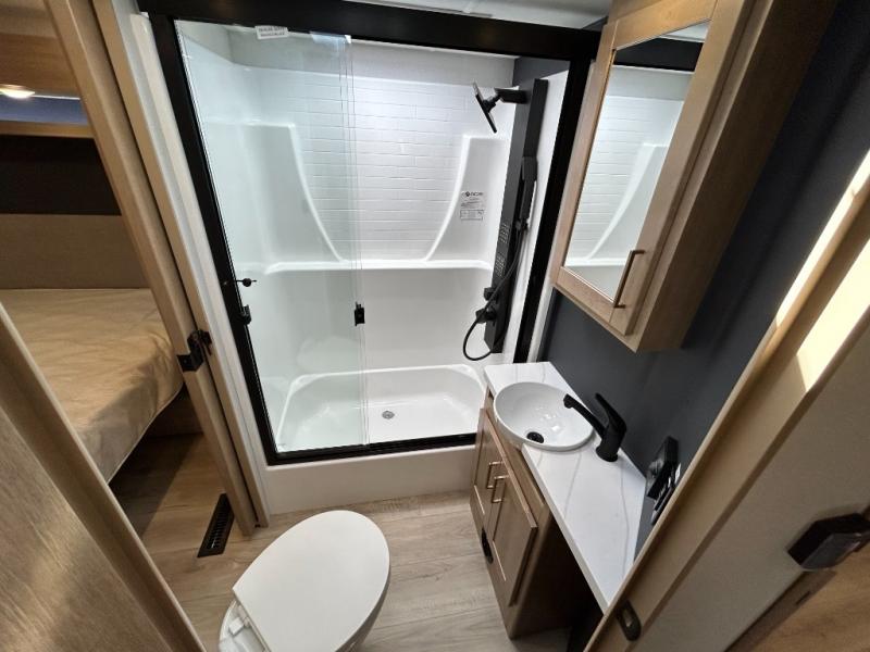 - HD Interior Package: 55 Main TV (most models), JBL Sound System, Residential Furniture w/Heat/Lumbar/Recline/USB Charging Port, Stainless Steel Appliances, 27â€TMâ€TM Residential Oven, 30” Residential Microwave Oven, Solid Surface CTops, MCD Black Out Shades, King Bed Tilt w/Memoiy Foam Mattress, Hidden Bedroom Storage(Most Models), Flush Floor Bedroom, One Piece Fiberglass Shower w/Glass Shower Door, Mult-Port Luxury Shower Sprayer, Washer/Dryer Prep.