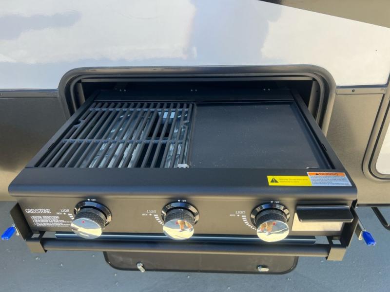 Satisfy your wanderlust with a Heartland Cyclone fifth wheel toy hauler! You won't have to sacrifice any luxury either with indulgent features like the king bedroom suite with an exclusive East to West bed tilt system with 30% more floor space, Stor-Mor three-sided access to the basement with 30% more storage capacity, and Step Caddy folding patio step for better stability as you enter or exit the patio. The industry first Grill and Go 25" residential pull out 3 burner griddle combo comes on models with an exterior kitchen for an easier cooking experience. Full height shaker cabinetry provides 25% more storage space so you can bring more camping necessities with you. If you like to dry camp longer then you will appreciate the industry's largest 150 gallons fresh water tanks. Come find the perfect model for you today!