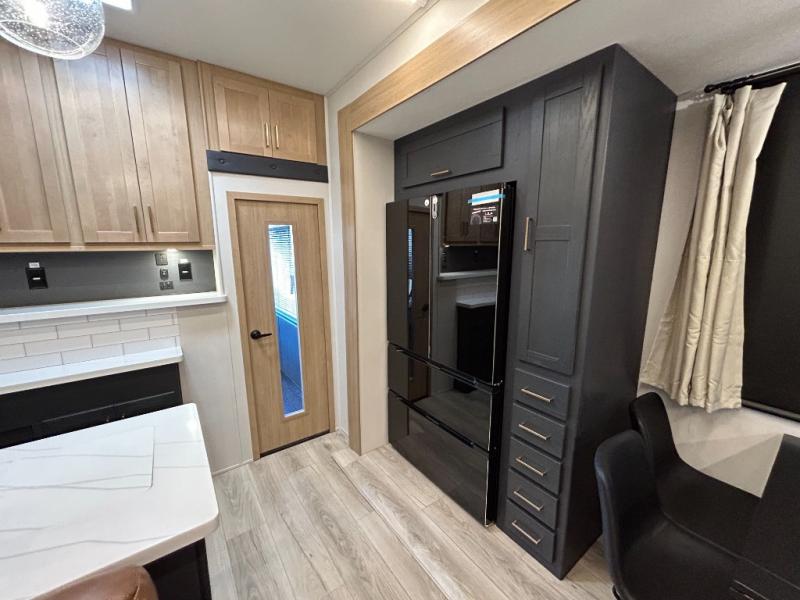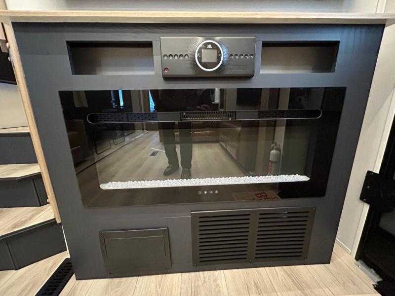 - Amp Svc, 2-30 Gallon LP Tanks, 19.6 CU FT. 12 Volt Quick Chill Black Glass Refrigeratior, 6 Pt HYD Auto Leveling, 20 GPH