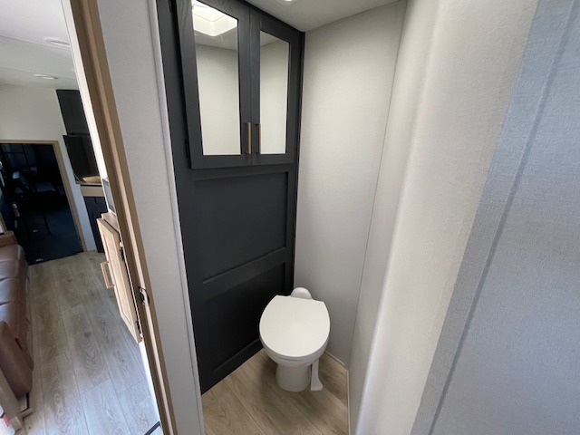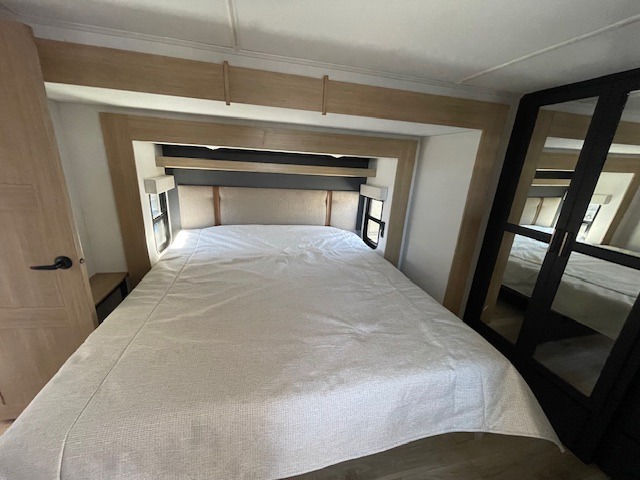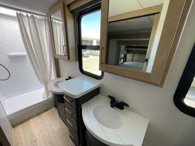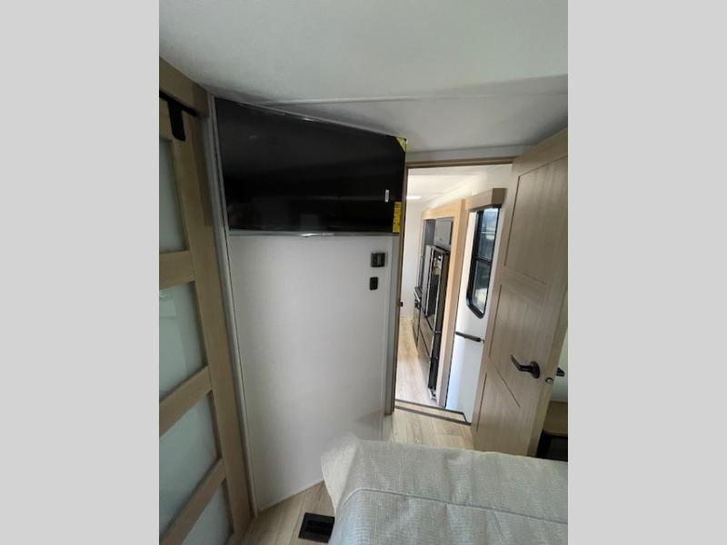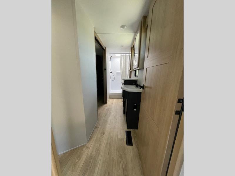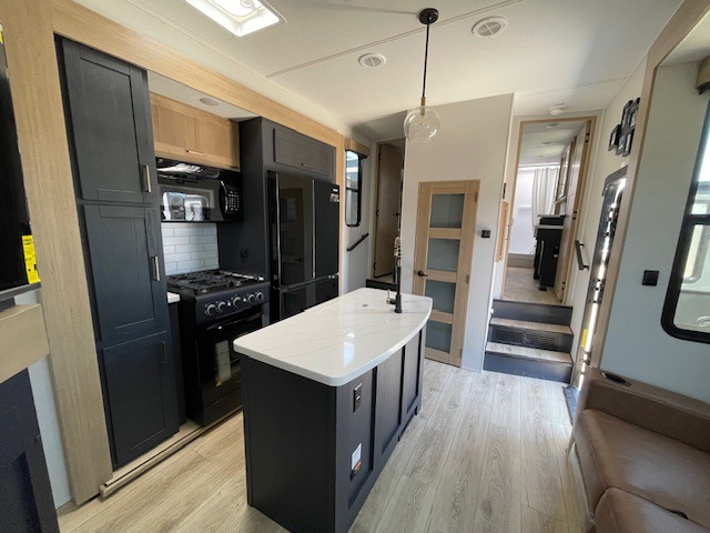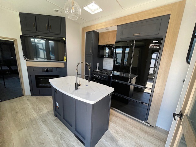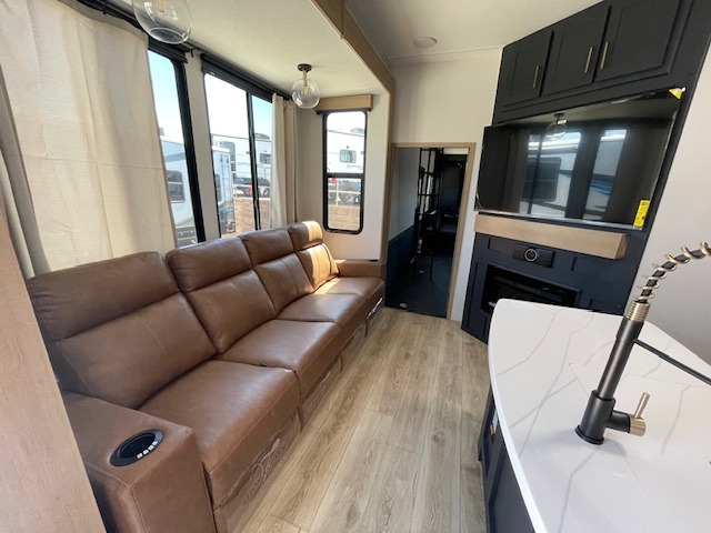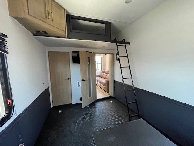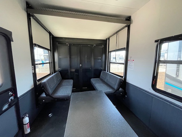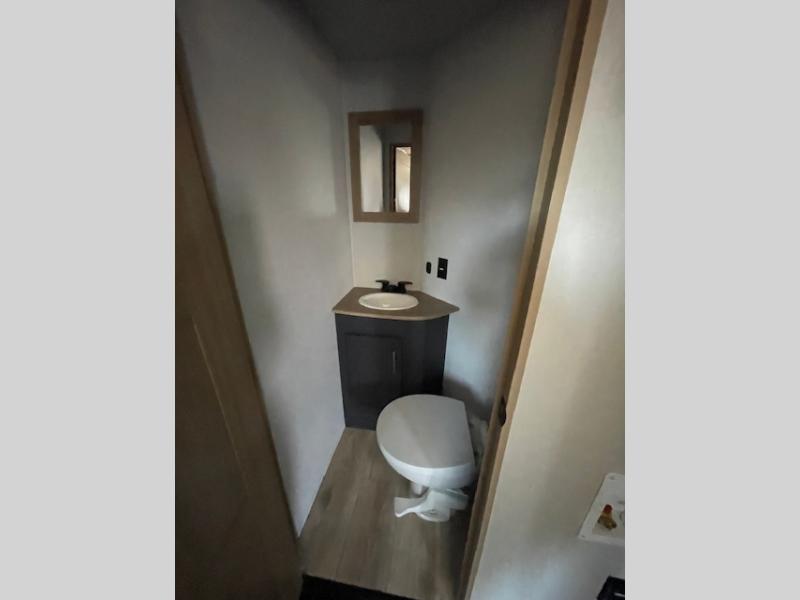 You're going to love every minute spent in this spacious toy hauler. The 17' 9" garage includes a its own exterior entry door, a half bath, and sleeping space for five to six with the included loft. There is even washer and dryer prep here that will come in handy after trail riding. Everyone can meet in the main living/kitchen area that includes a kitchen island, a large sofa, and a 50" LCD HDTV for movie night. The front of this model is shared with the unique master bedroom and bathroom that includes a tilting king bed slide out, a spacious full bath with dual bath sinks, and tons of storage space for all your belongings!
