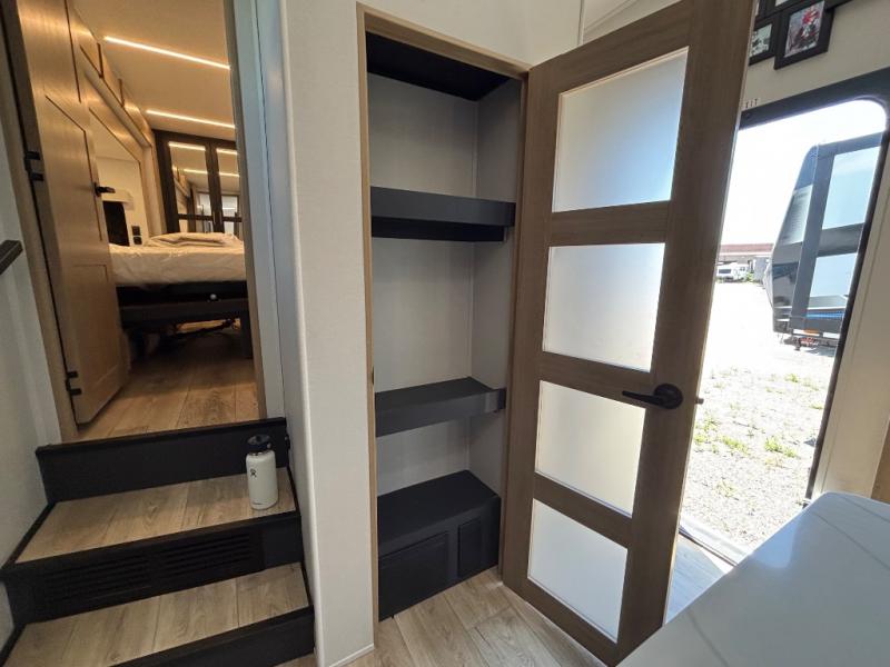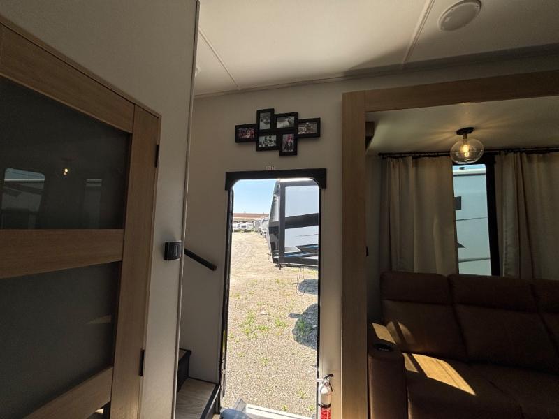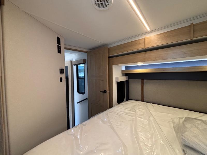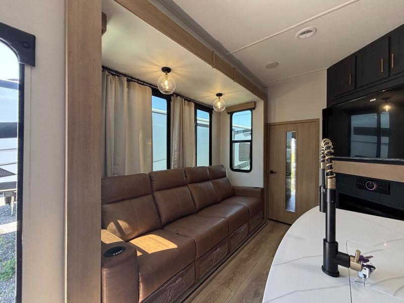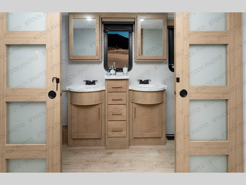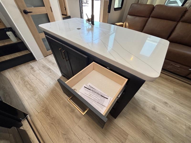 You're going to love every minute spent in this spacious toy hauler. The 17' 9" garage includes a its own exterior entry door, a half bath, and sleeping space for five to six with the included loft. There is even washer and dryer prep here that will come in handy after trail riding. Everyone can meet in the main living/kitchen area that includes a kitchen island, a large sofa, and a 50" LCD HDTV for movie night. The front of this model is shared with the unique master bedroom and bathroom that includes a tilting king bed slide out, a spacious full bath with dual bath sinks, and tons of storage space for all your belongings!